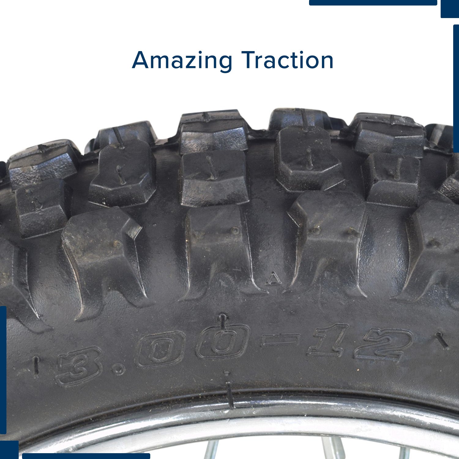 - Durable Construction: Constructed with high-quality materials, this rear wheel assembly includes a knobby tread 12" (3.00-12) rubber tire, tubes and spoked rim with bearings, and a sturdy hub, ensuring long-lasting durability and reliability. Does not include brake
