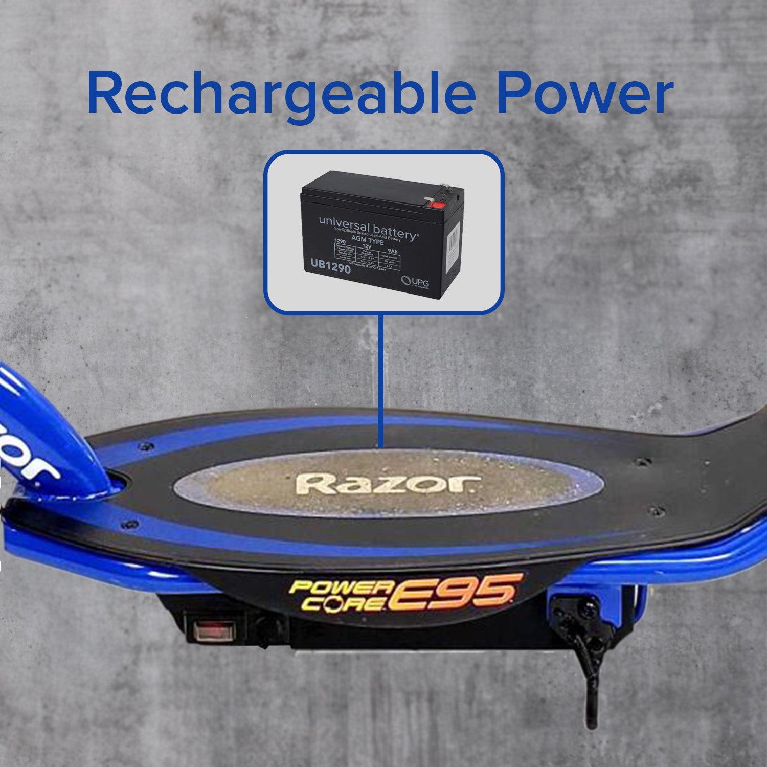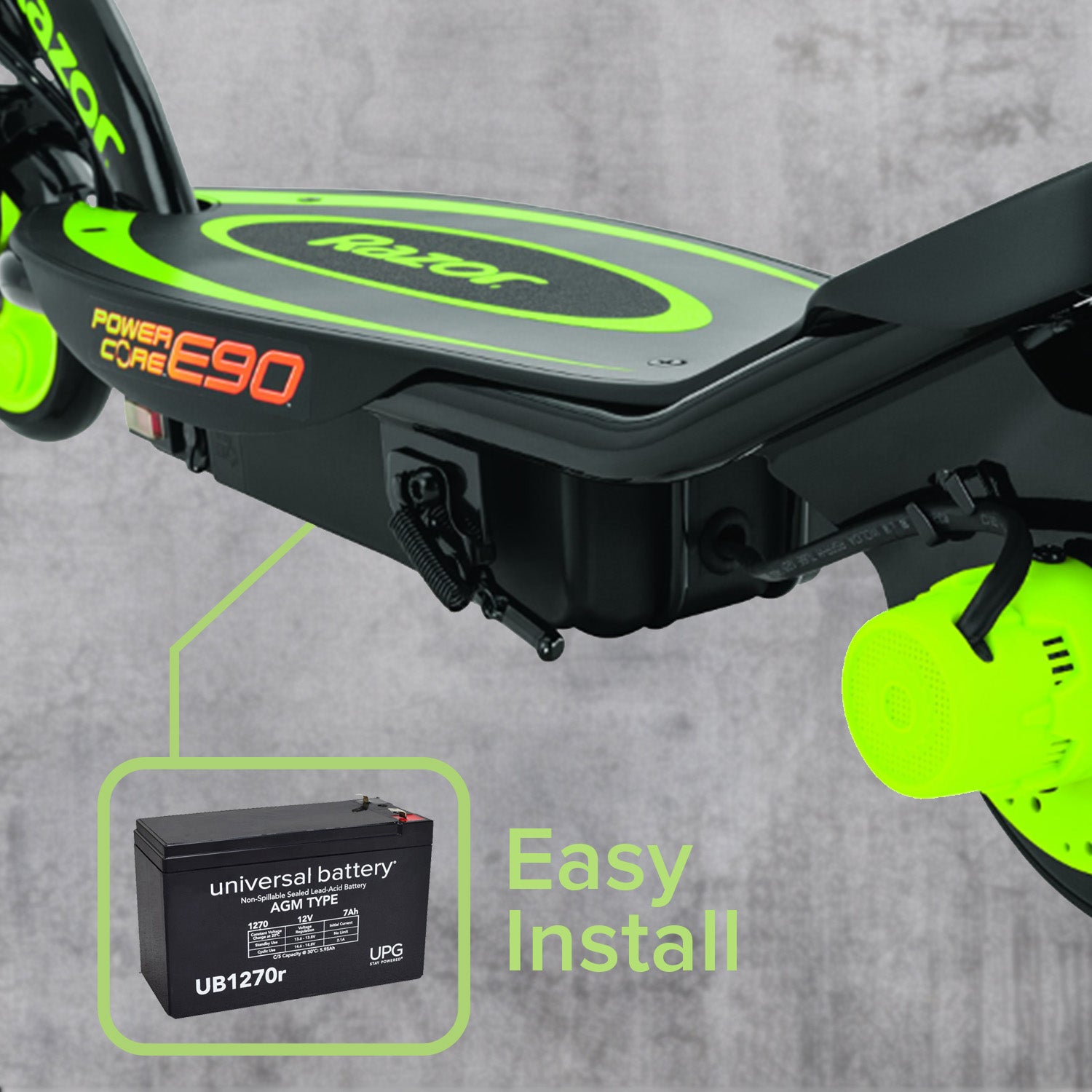The Razor E90 Accelerator and the Power Core E90 (aka the E90 with Hub Motor) was an excellent little electric scooter, and our equivalent 12 volt battery for the Razor Power Core 90, Power Core E90, Power Core E90 Glow, and Power Core E95 is an equally excellent value in replacement scooter batteries. Monster Scooter Parts offers this 12 Volt battery in your choice of four great options.