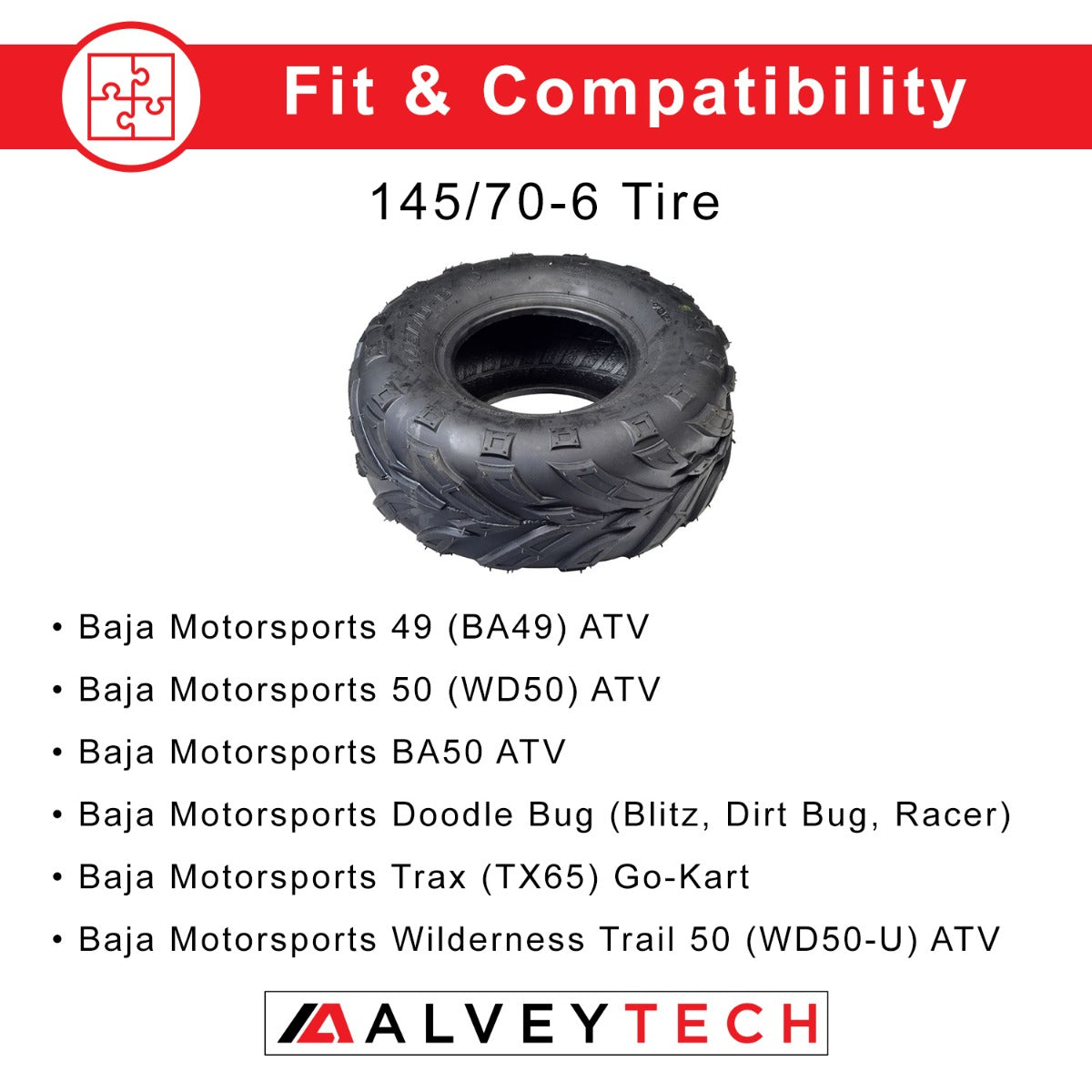 145/70-6 Tire with V-Tread for the Baja Blitz, Dirt Bug, Doodle Bug, & Racer Mini Bikes