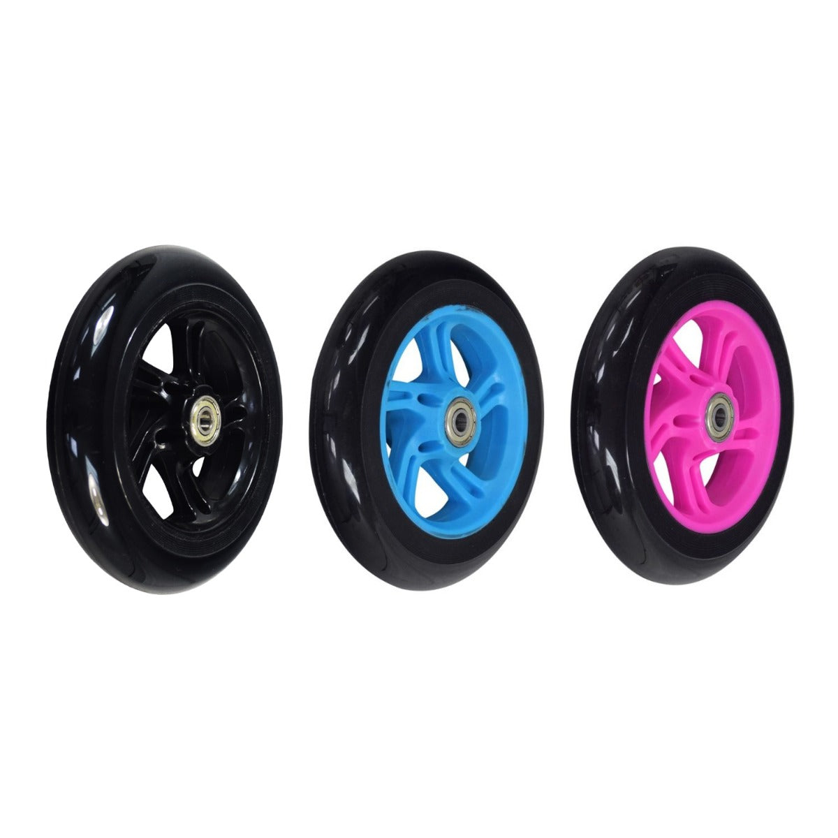 The 150 mm diameter front wheel for the Hover-1 Comet electric scooter comes with a pair of pre-installed 608Z bearings and a 5-spike rim. Replace your Comet's damaged front wheel assembly with this replacement and you'll be scooting along again.