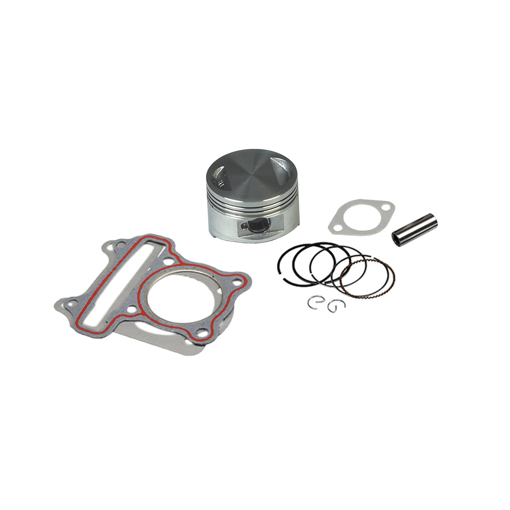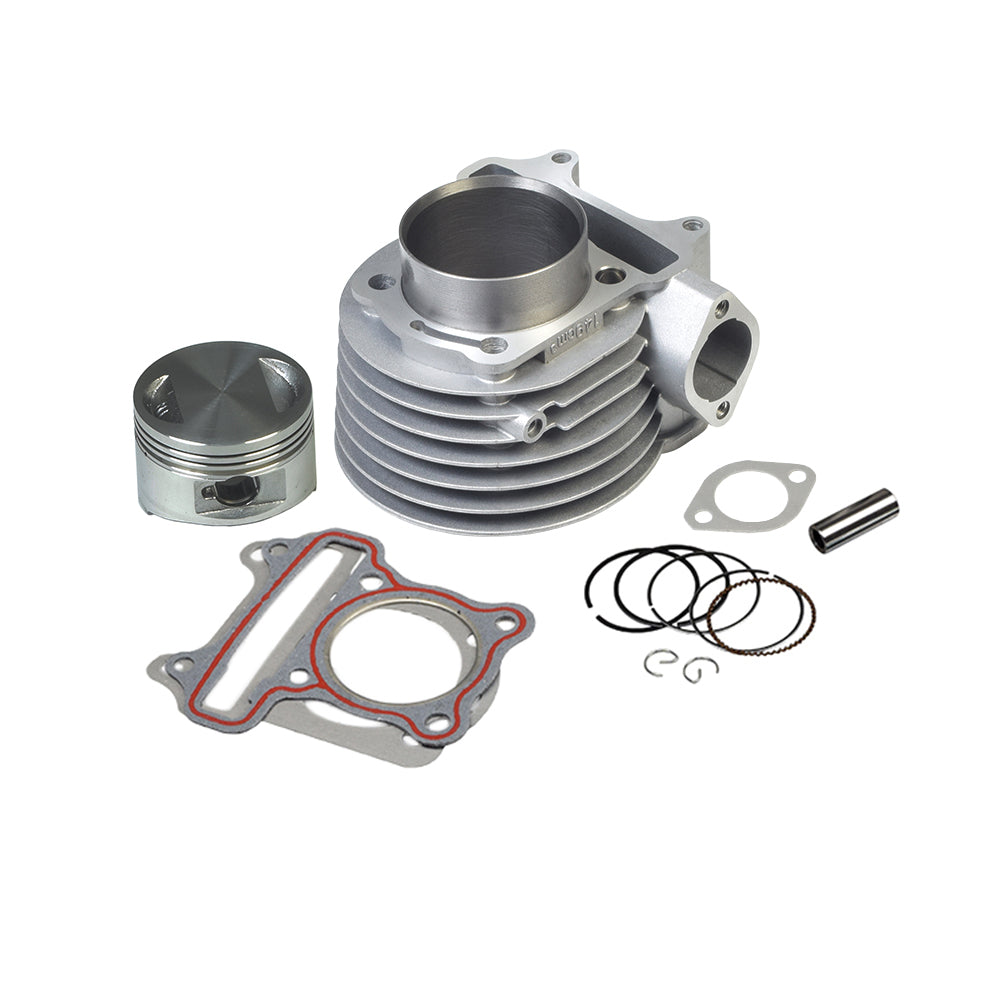 The 150cc Cylinder Kit for Hammerhead Off-Road® go-kart engines includes everything shown in the image; cylinder, piston, rings, gaskets, and more. This high-performance scooter engine kit is easy to install. Combine with a high-performance carburetor and high-performance exhaust and get peak performance from your 150cc Hammerhead go-kart.
