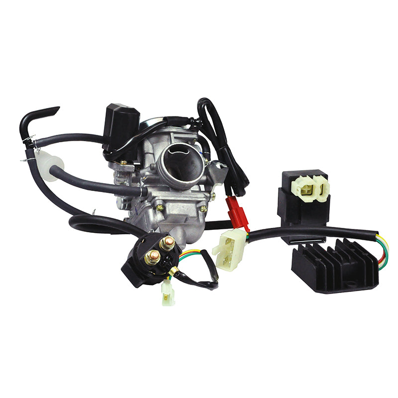 - Includes carburetor, rectifier, voltage regulator, and CDI