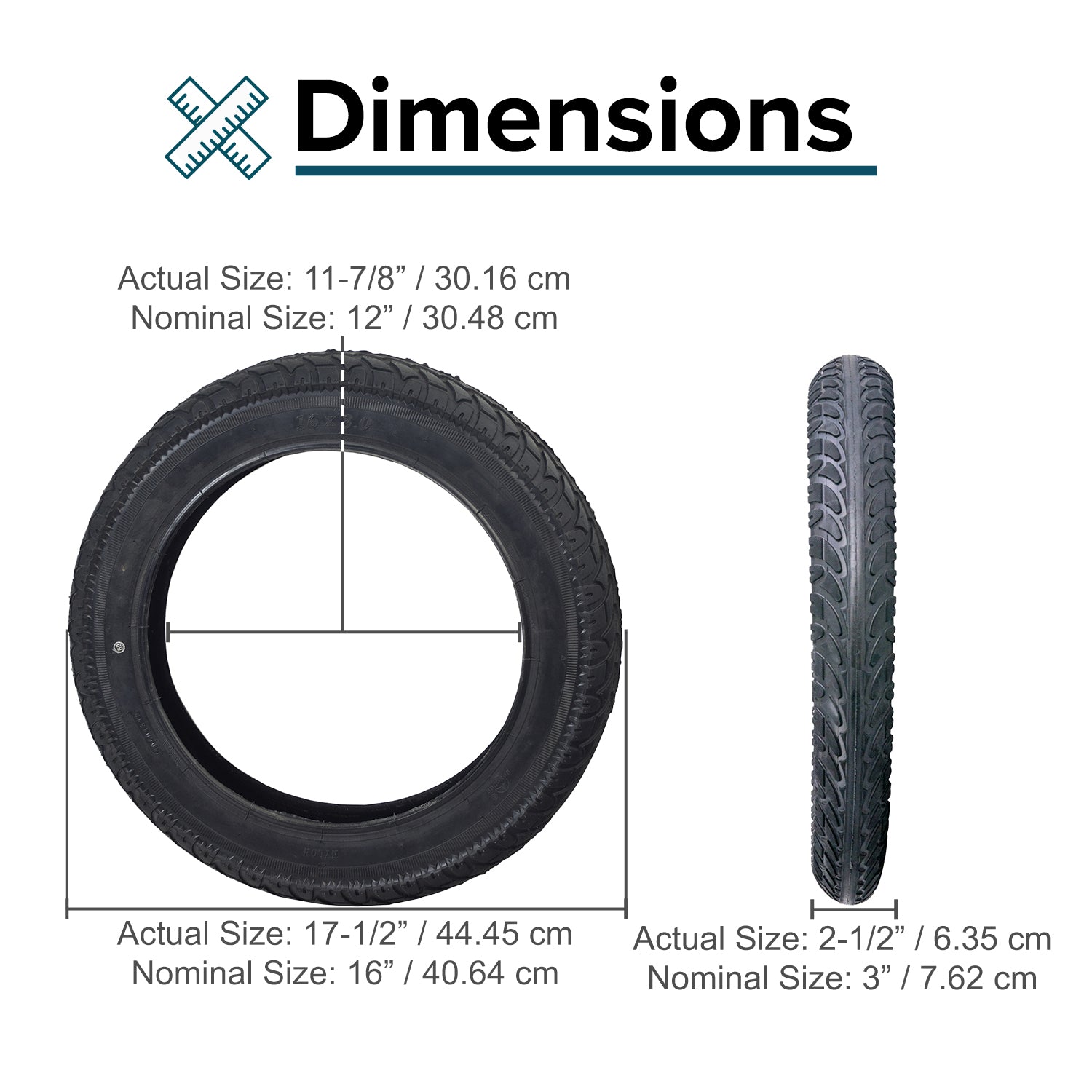 Note: This pneumatic tire requires an inner tube. Even in these days of tubeless pneumatic tires, many riders still prefer the smooth ride offered by a tubed tire.