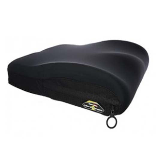 The 16" wide by 18" deep Tru-Comfort 2 SPP seat cushion assembly is made with a deep contoured, high-density molded foam base under a CoolCore technology cover. The easy to pull rubber loop zipper handles and side pouches on both sides help to make this wheelchair seat cusion a blend of convenience and comfort.