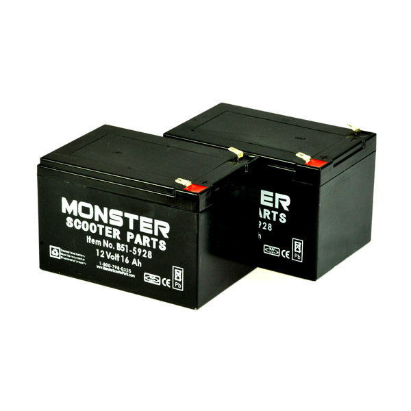 Our 16 Ah 24 Volt (12 Ah Upgrade) AGM scooter battery pack is a long-running, deep-cycle set of batteries in a small package. These batteries offer a superior extended running time between charges that won't leave you stranded.