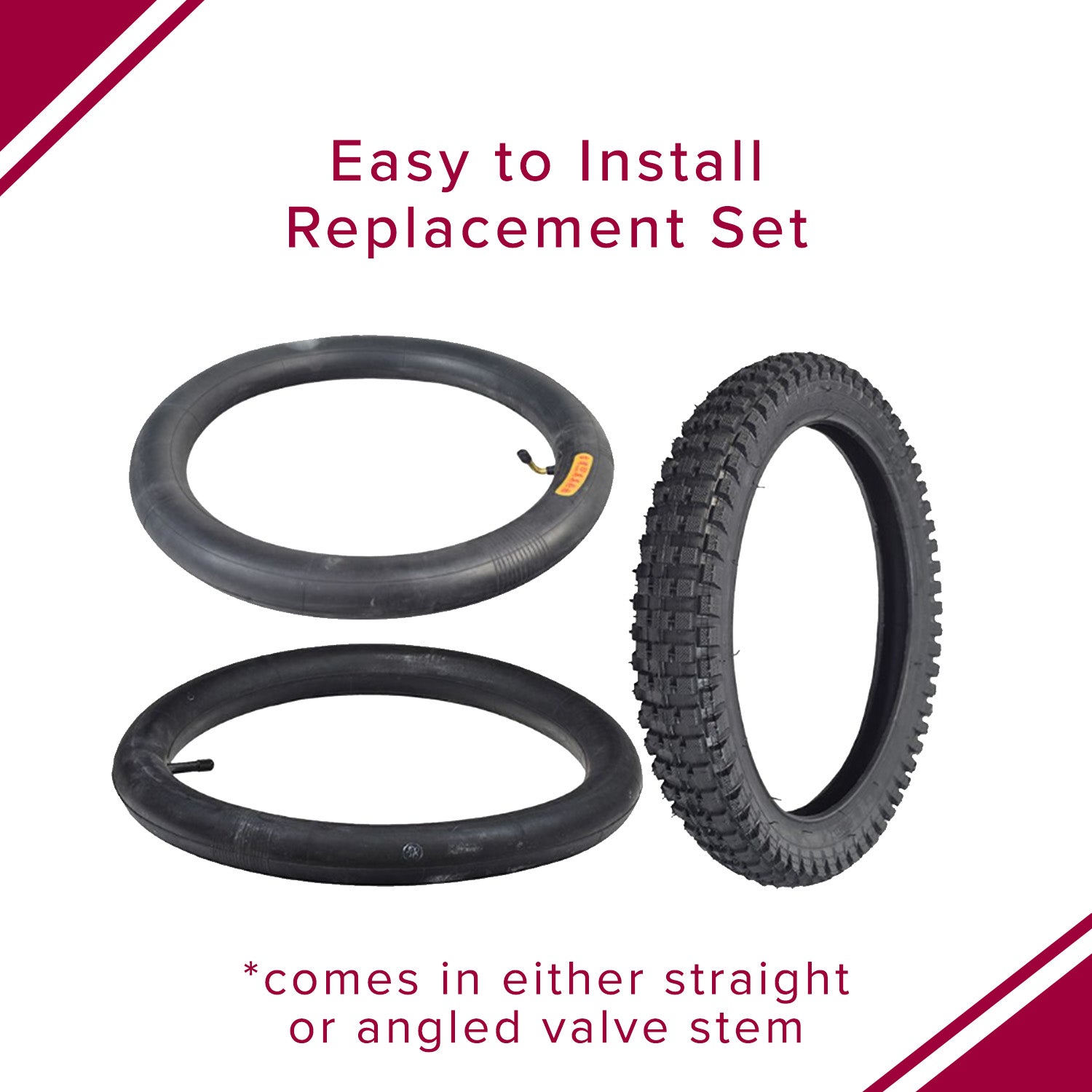 - Front tire & tube set comes standard with a straight valve stem inner tube