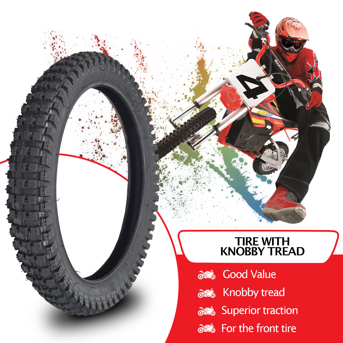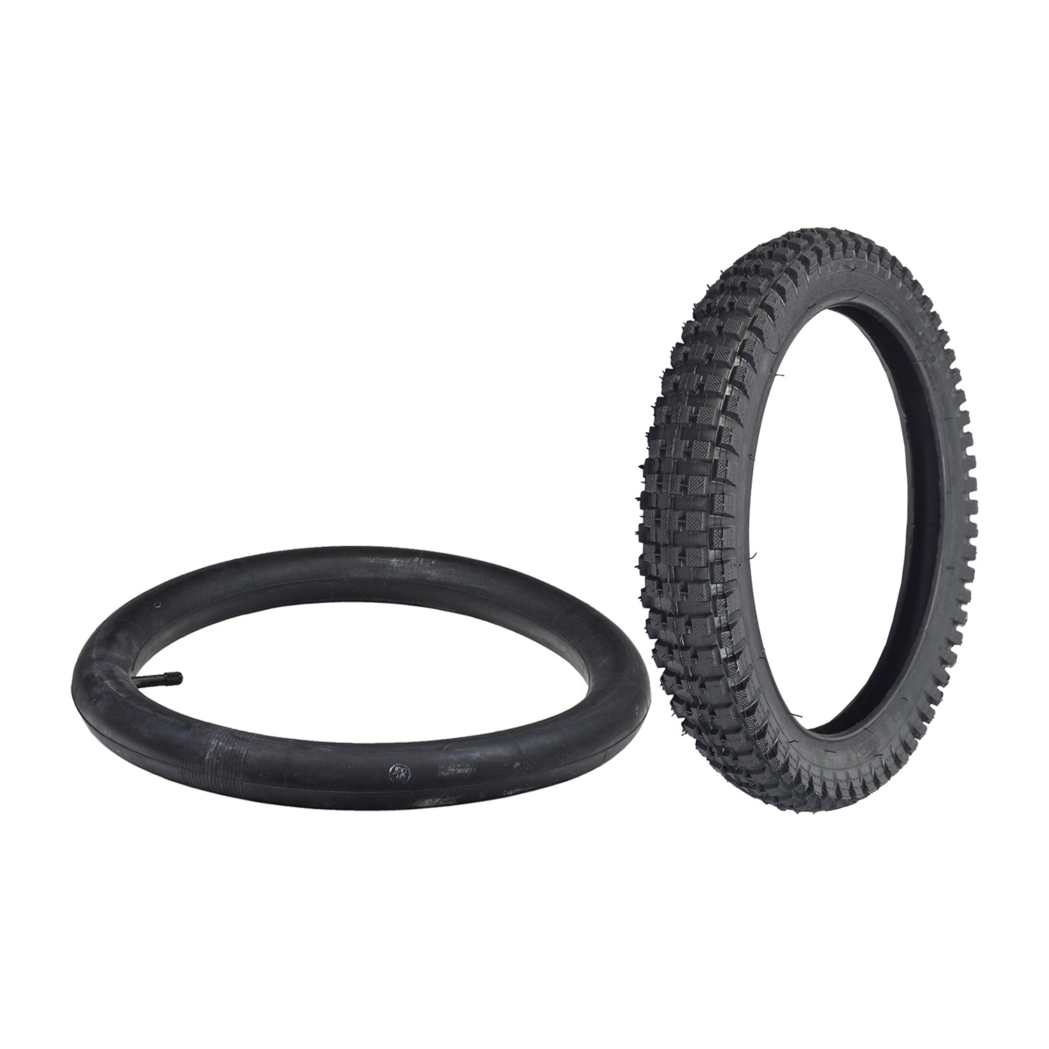 - 16x2.4 front dirt bike tire and tube set with knobby tread