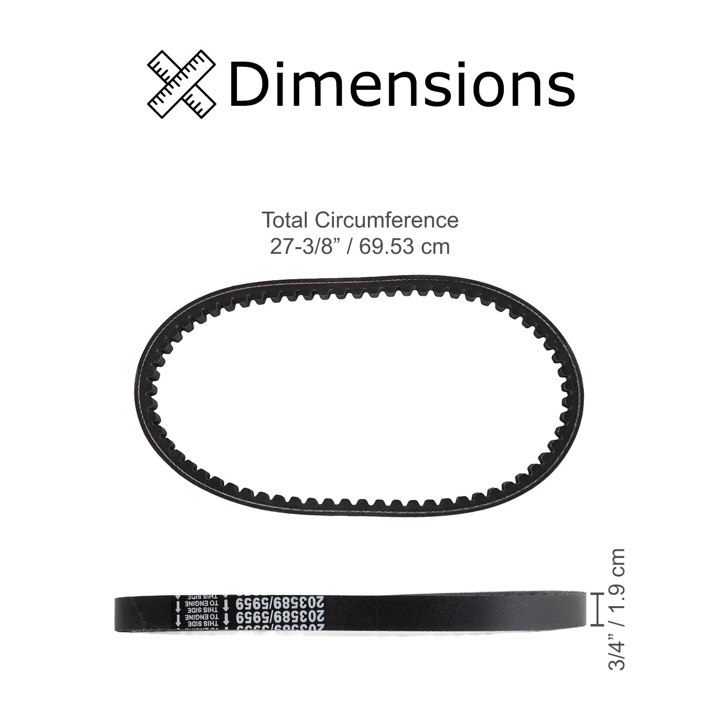 The replacement go-kart belt for Comet style torque converters replaces the belt numbers 203589, 203589A, 203589 A/DF, & 5959. This belt is asymmetric with a 3/4" wide top face, 18 degree angle on one side, 2.5 degree angle on the other side.