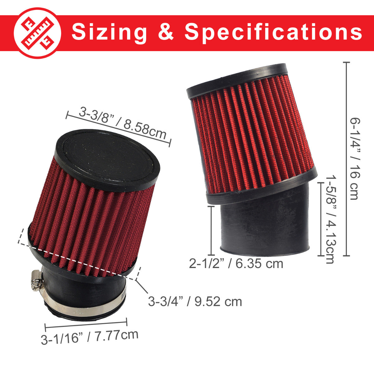 - Includes the filter, the filter-to-carburetor mounting stud, stack, adapter, bracket, hose clamp, & hardware