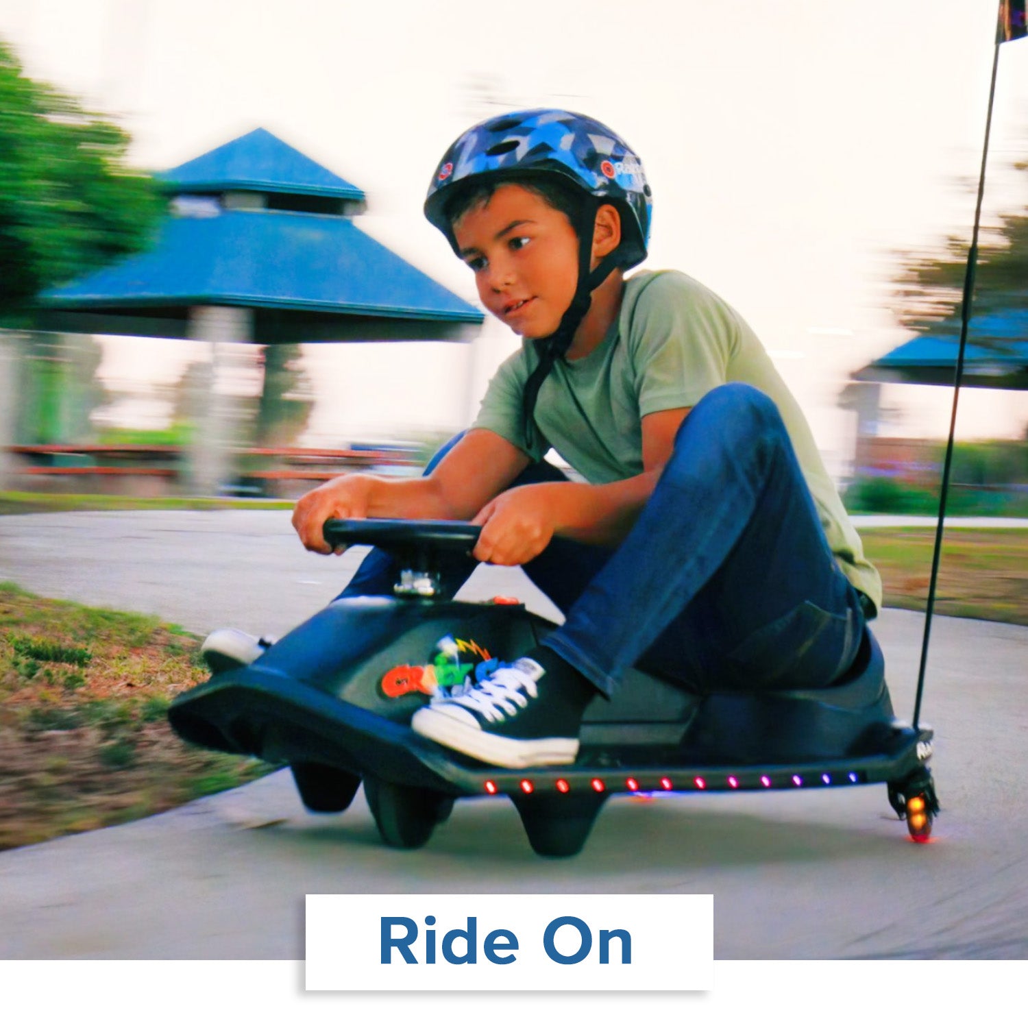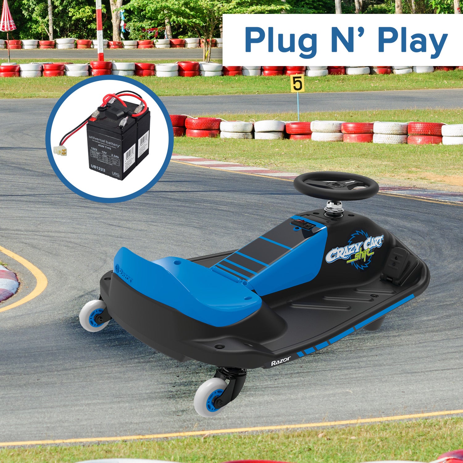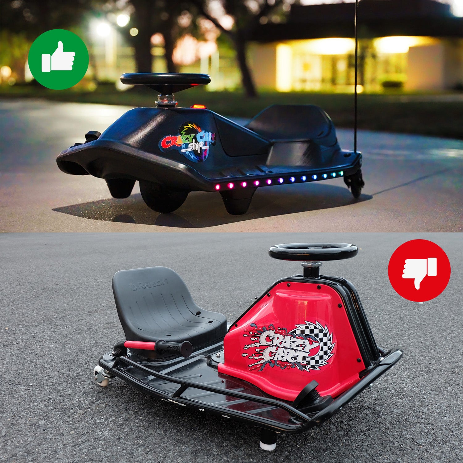 The Razor Crazy Cart Shift is a downsized, more kid-friendly version of their original Crazy Cart designed for smaller, younger riders. As such, the Crazy Cart Shift uses a smaller capacity battery pack.