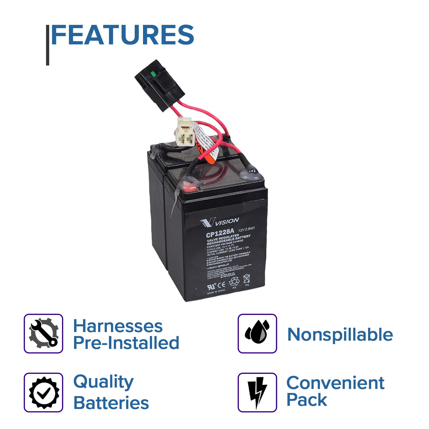- Battery harness pre-installed