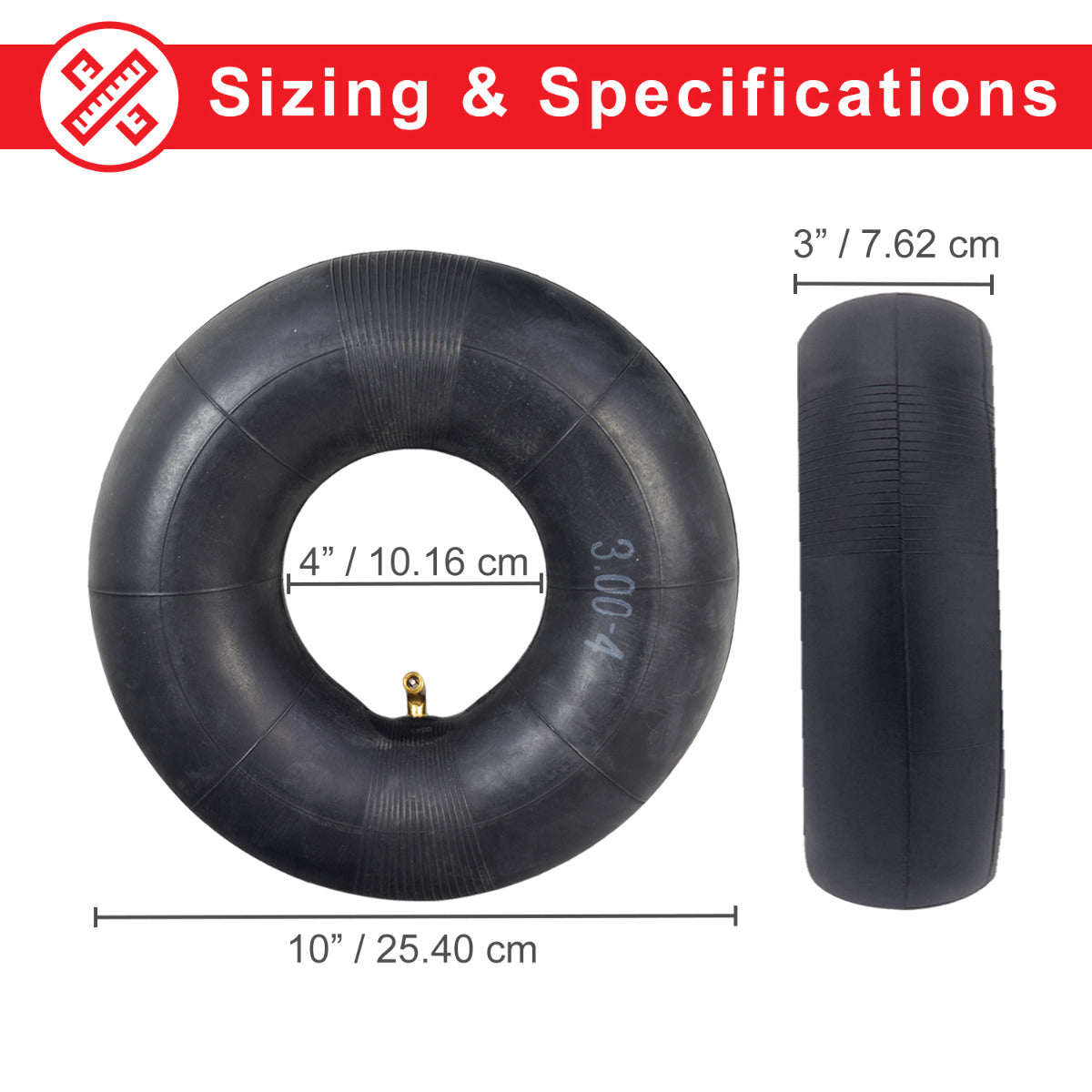 - 3.00-4 (10"x3", 260x85) inner tube for a smooth pneumatic ride