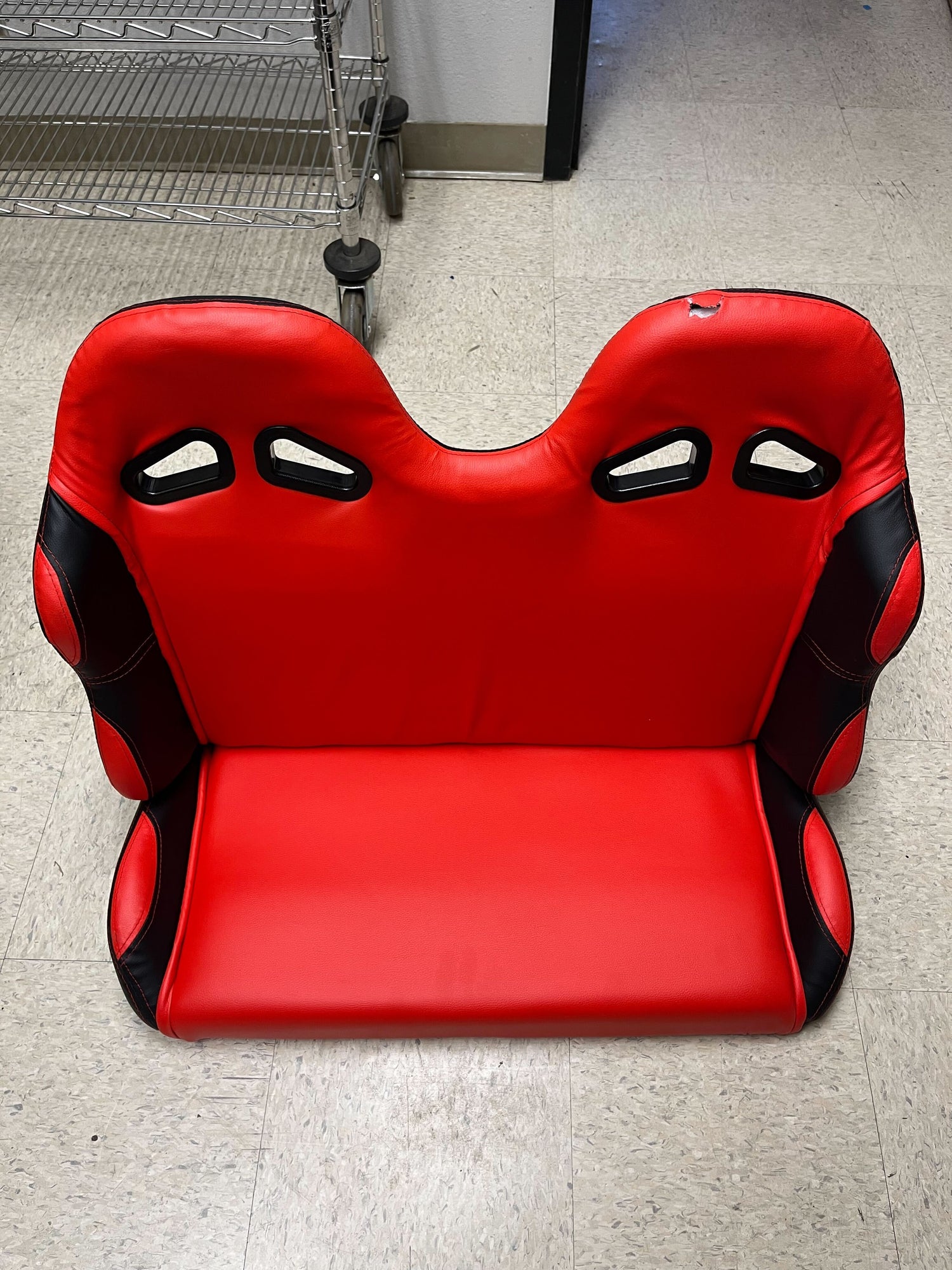 The racing-style 31-1/2" red double seat for the Coleman KT196 go-kart features vents in the seat back. This replacement double seat for the Coleman go-kart is a top-notch aftermarket product.