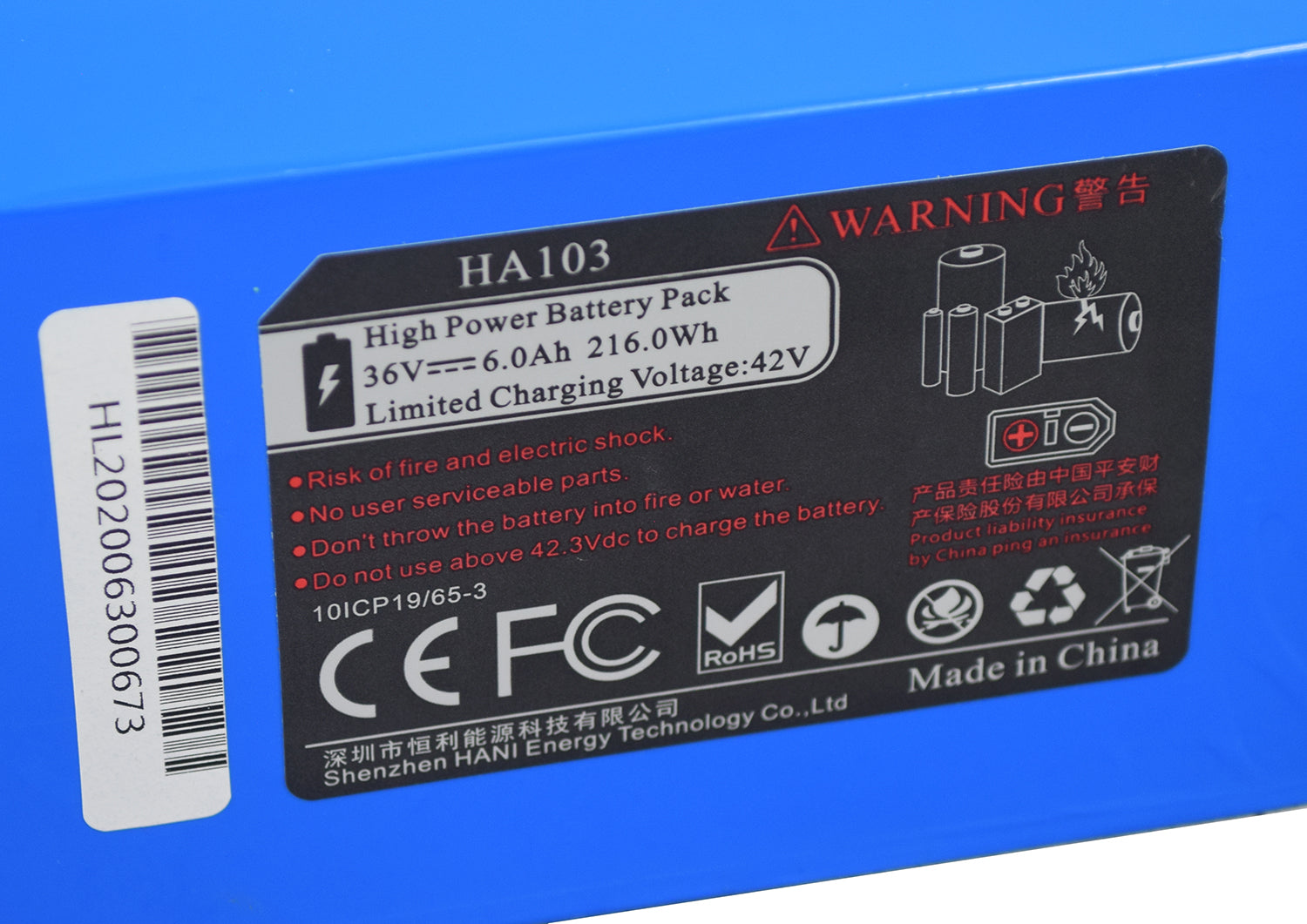 36 Volt 6.0 Ah HA103 Lithium Battery Pack for Jetson® Bolt & Bolt Pro Electric Bikes