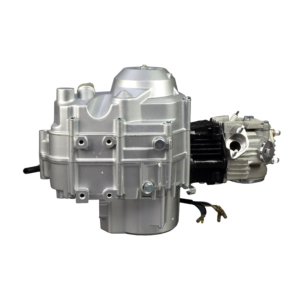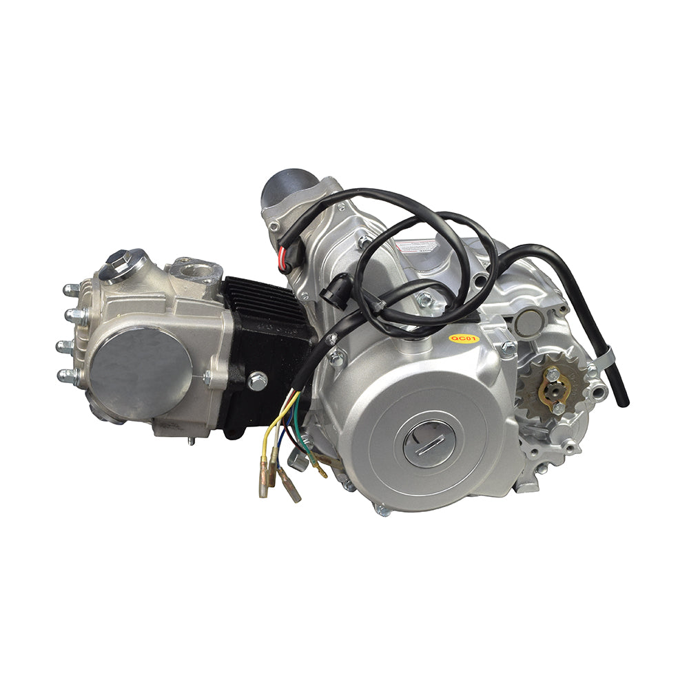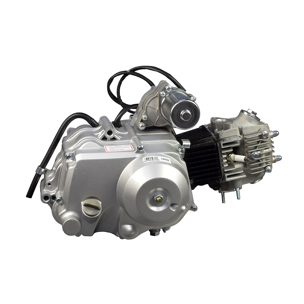 The 50cc ATV & dirt bike engine comes equipped with a #420 chain sprocket and electric starter motor. The chain cover, carburetor joint (intake manifold extension), gaskets, O-ring, and carburetor mounting hardware is included. The starter motor is our part number G07-1492 and can be found at the link below: