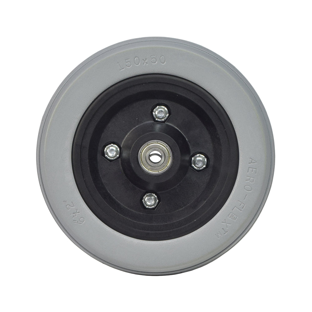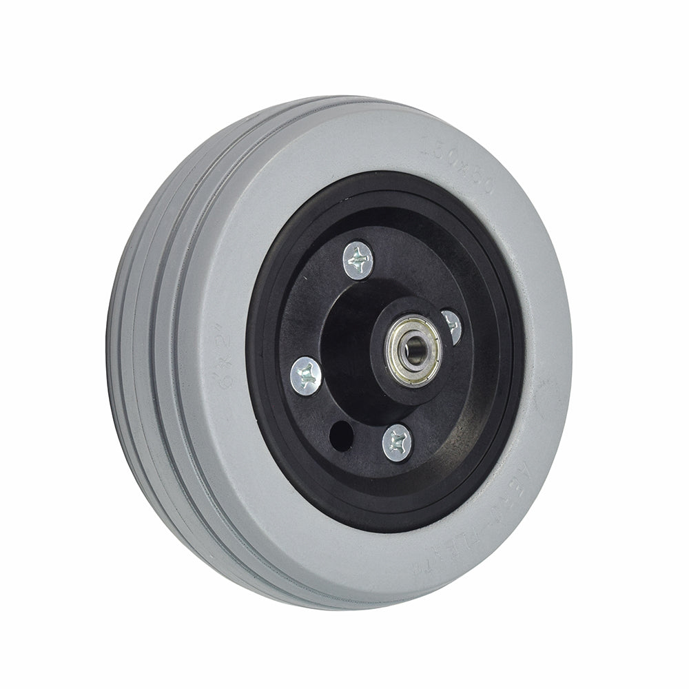 This little wheel assembly can serve as a front or rear caster, or as an anti-tipper. The size is what makes this assembly truly universal, with a compatibility almost too extensive to begin listing. Among the veritable plethora of power chair models are numerous Jazzy models including the 614, 614HD, Quantum Q614, and many, many more. This is a very common size and style of power chair caster wheel, and has for the most part replaced the larger older style 200x50 (8" x 2" roughly) polyurethane, foam-filled, or pneumatic caster wheels.