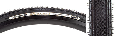 The new Gravel King SS is a perfect middle ground between the Slick and SK models. Fast rolling file style tread down the center with micro knobs on each side and long rectangular knobs on the shoulders strikes a perfect balance for mixed gravel and road use. Standard belting on all Gravel King models helps to prevent punctures and flats while increasing over all durability.
