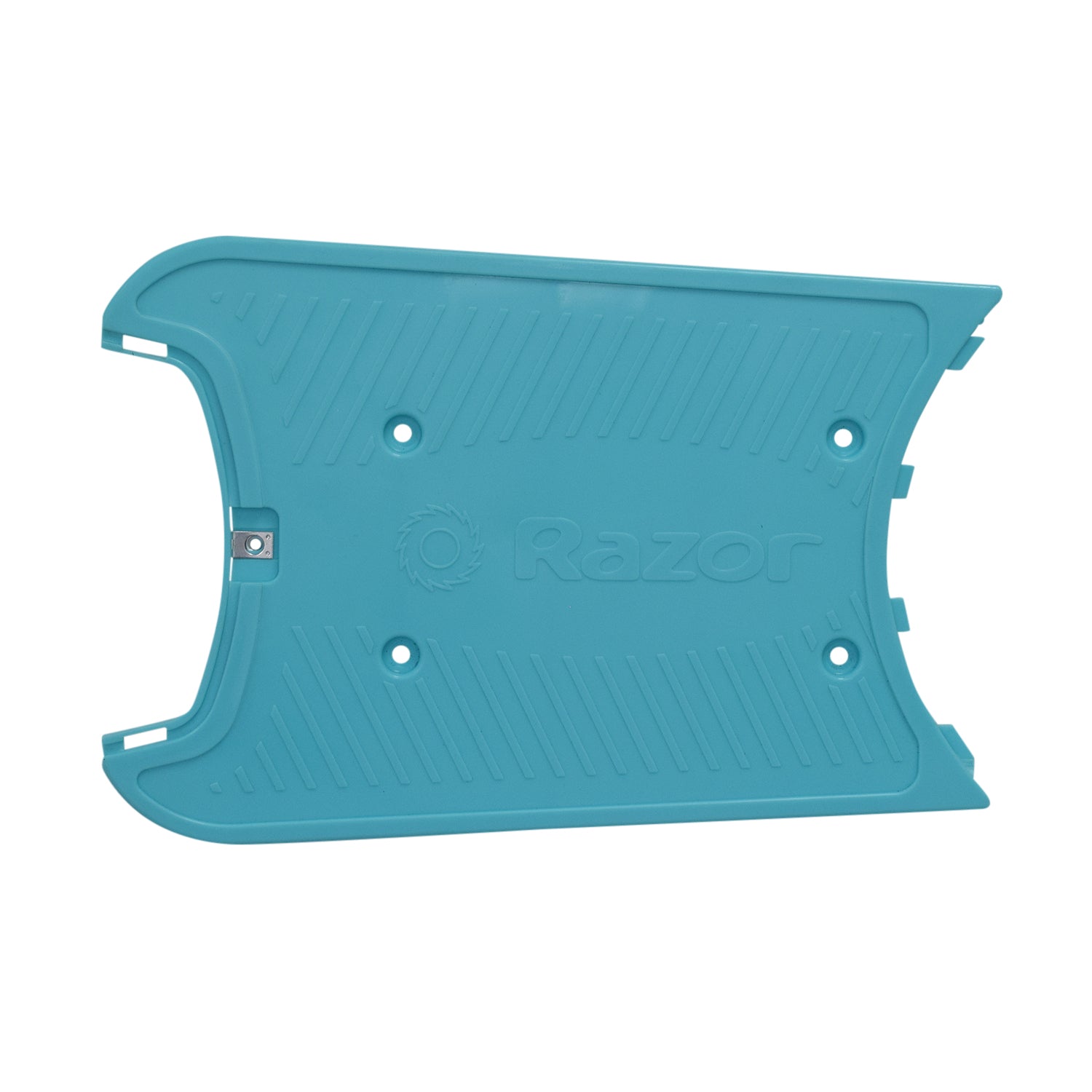 The base fairing for the Razor Pocket Mod Petite electric scooter might also be referred to as the deck plate or shroud. The turquoise blue body panel connects to the front cover plate to the rear cover.