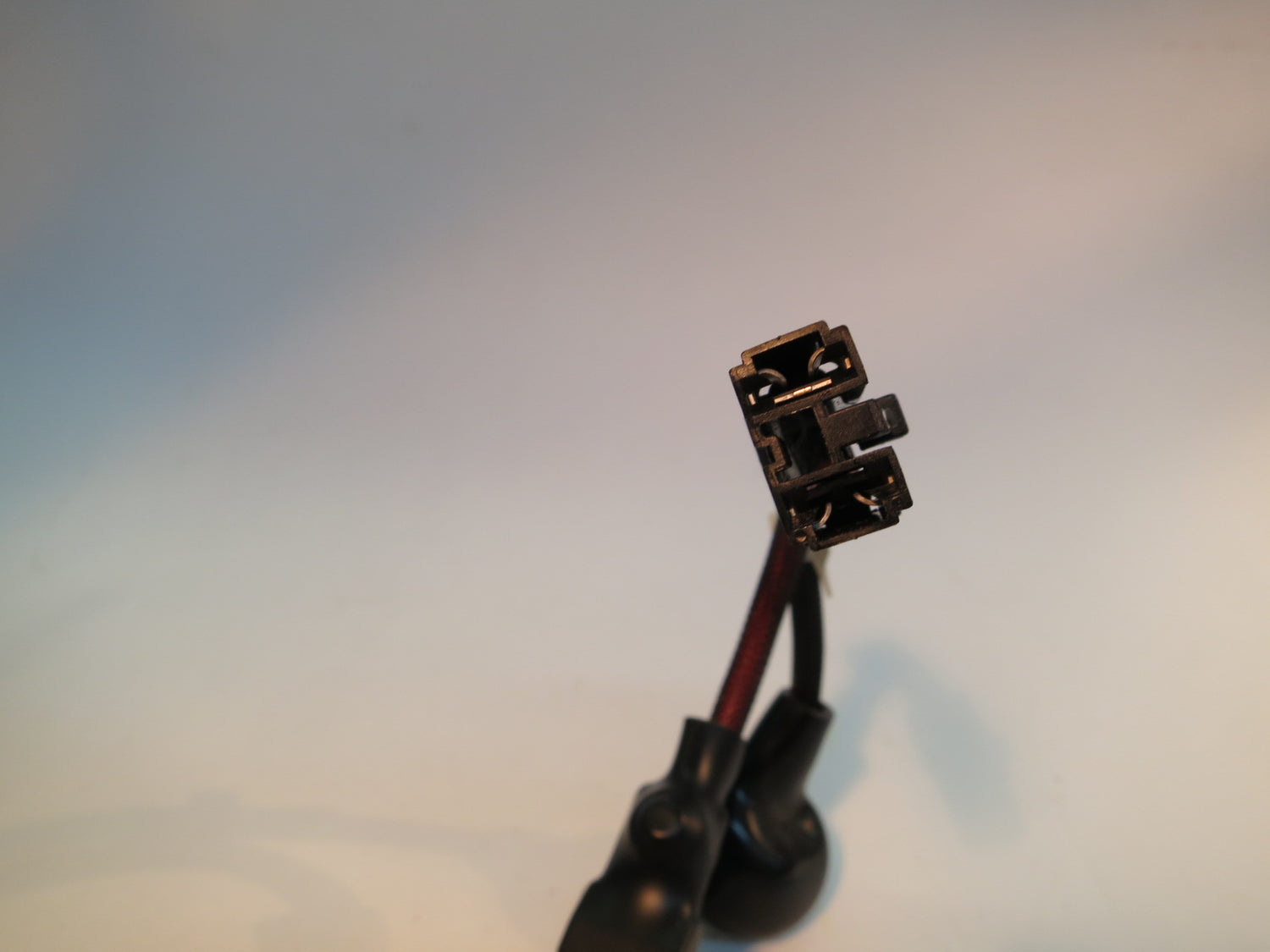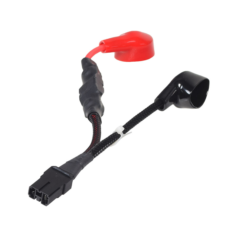 The battery harness for the Jazzy 614, 614HD, and Quantum Q614 power chairs includes the positive terminal eye, the negative eye, cable and connector.