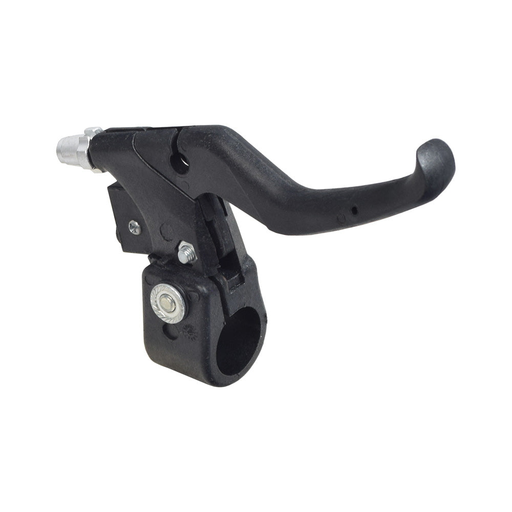 - Black plastic brake lever with built-in return spring