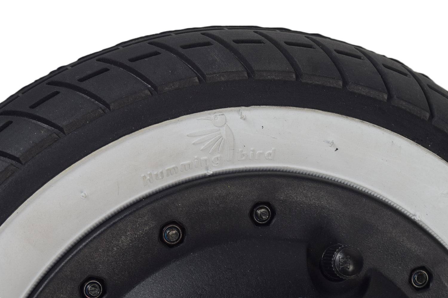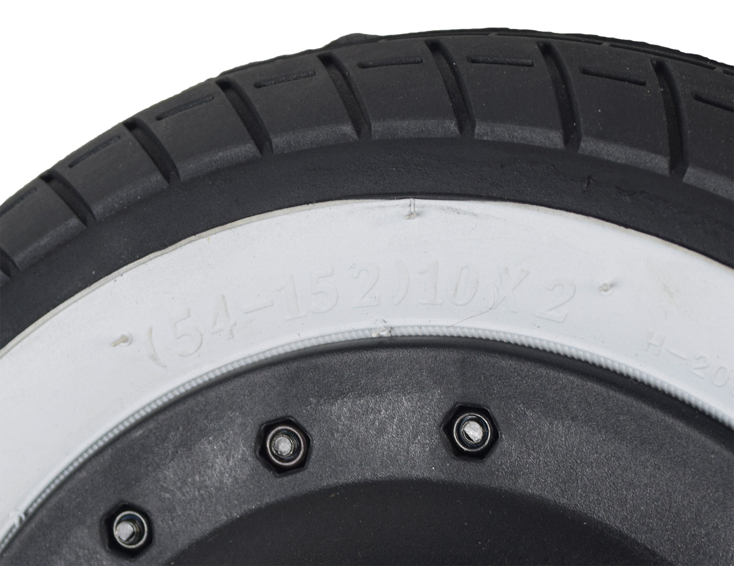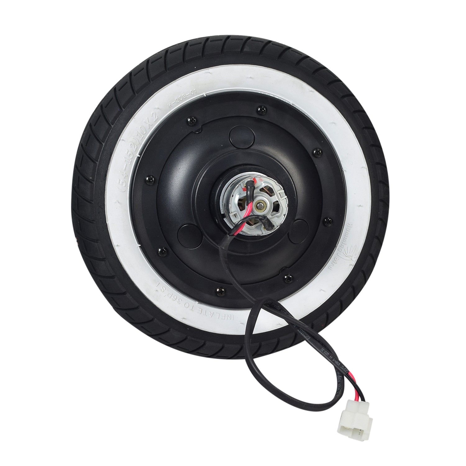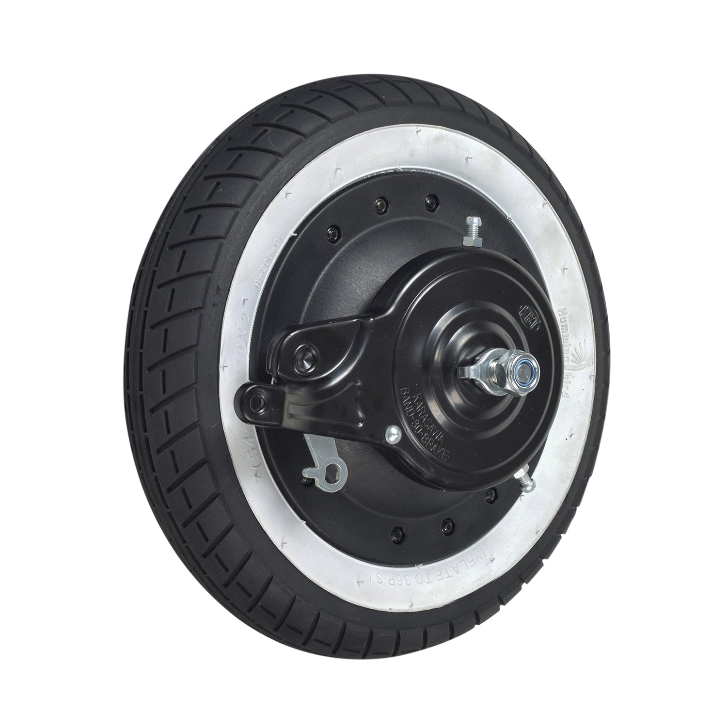 The complete rear wheel with hub motor for the Razor Pocket Mod Petite is available in several color options. In addition, the pneumatic tire comes with a distinctive whitewall that echoes the classic Euroscooters of the past. Included with the hub motor/rear wheel assembly is the inner tube, rear axle, hub cover, and an 80 mm band brake