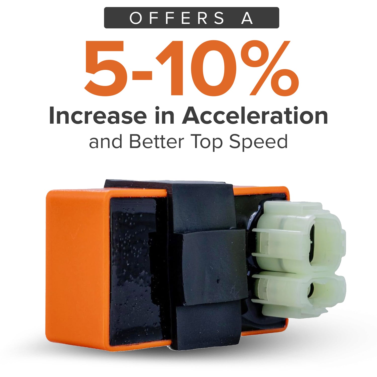 Here is an item that is as rare as hens' teeth. Our orange-colored DC High Performance CDI Module (Ignitor) for 50cc, 90cc, 110cc, 125cc, & 150cc gas scooters and ATVs sports a 6-pin (4+2) rounded connector, and is especially useful for those KYMCO machines with their DC system. This is a "no-rev limit" module that offers a 5 to10% acceleration increase and better top speed.