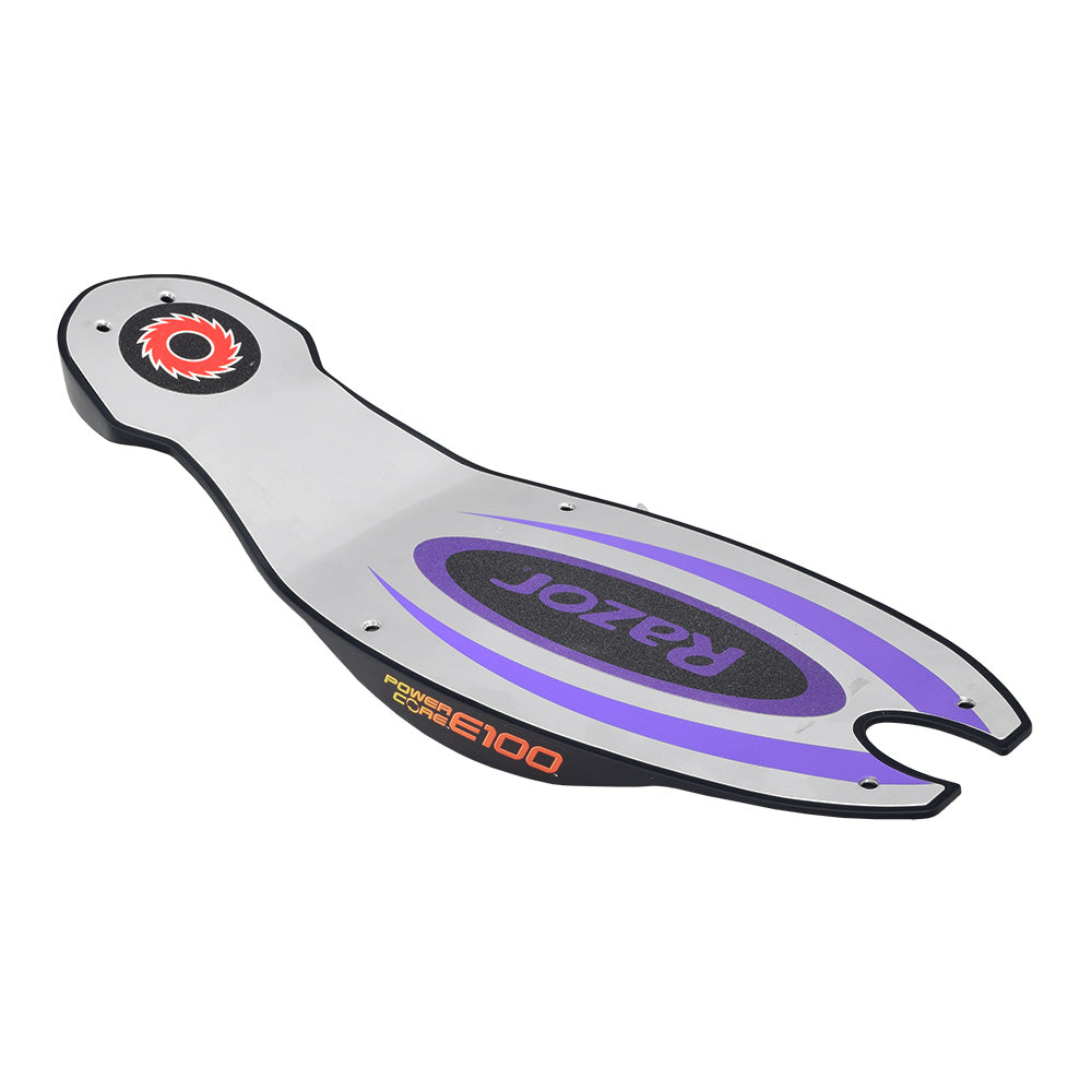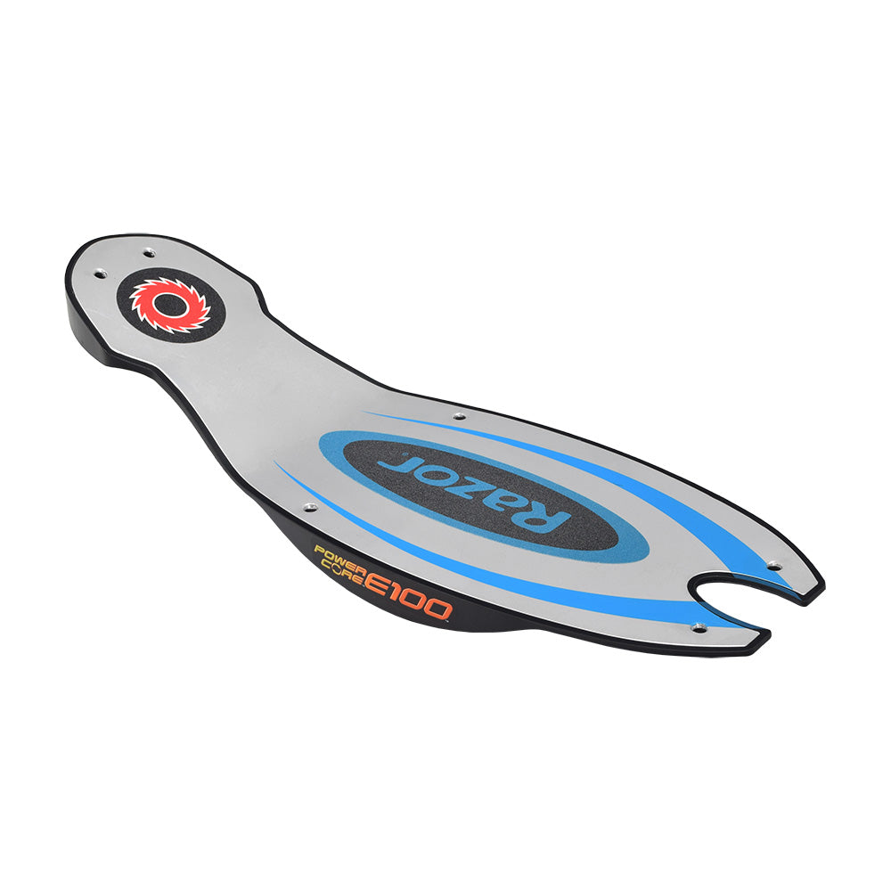 The deck plate for theRazor Power Core E100 comes in several optional color schemes including blue, purple, or red. These decks feature a textured Razor grip tape logo as well as a central textured panel to give riders that extra grip needed when cruising at fast speeds or making those close turns.