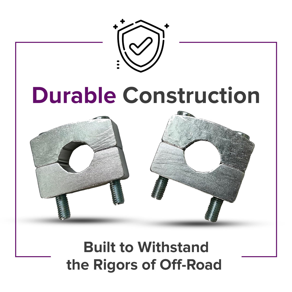This set of handlebar clamps for the Razor Rambler 16 electric mini bike is all you need to hold the handlebar assembly to the front fork. The set includes both clamps and four mounting bolts.