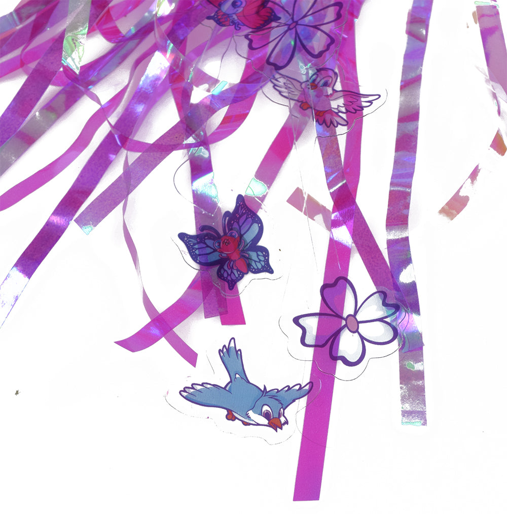 Every little girl wants a pair of these flowery KidZamo handlebar streamers for bikes & scooters! These white, pink, and purple streamers come festooned with flowers, birdies, and butterflies! Easy to install in seconds,just insert right into the ends of the handlebar grips.