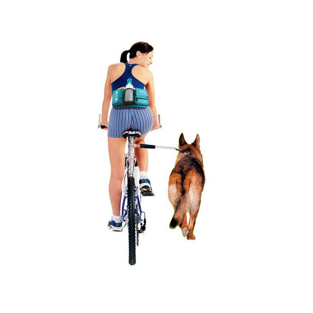 The hands free bicycle dog leash is an essential bike accessory that lets your best buddy run along beside you as you ride your bike. This clamp-on bar holds the dog out to the side, and ensures that the dog doesn't get tangled up or caught in the spokes.