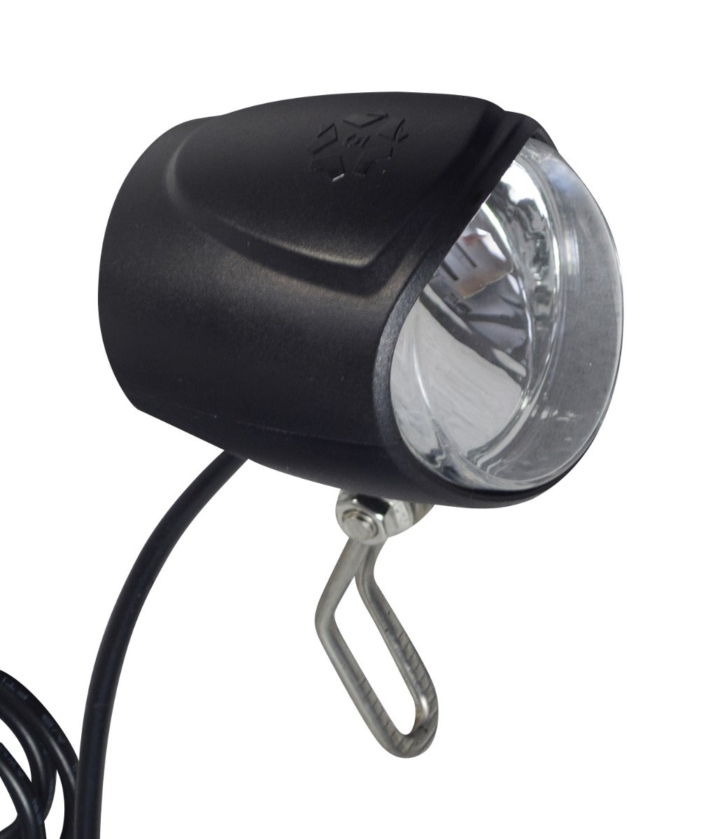 The headlight assembly for Razor E-XR and E300 HDL electric scooters includes the mounting clip, the wire harness with connector, as well as the mounting screws.