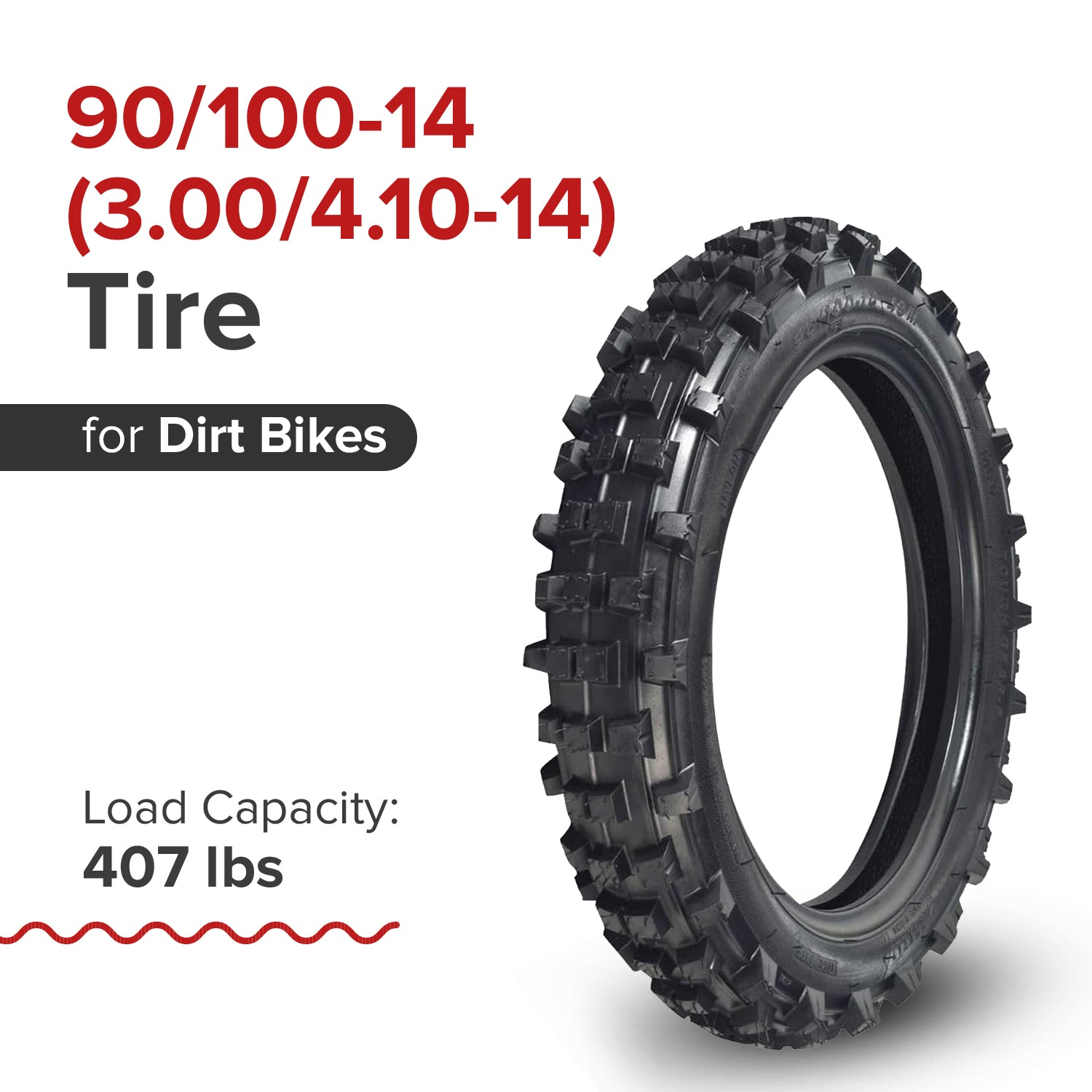 90/100-14 (3.00/4.10-14) Dirt Bike Tire with Knobby Tread