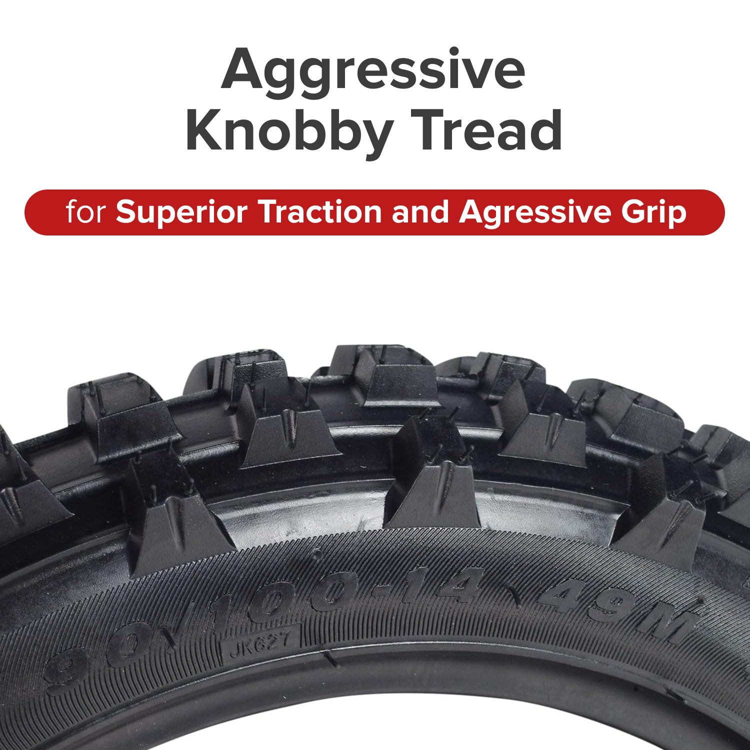 Though undeniably off-road biased, the tire wears exceptionally well on the pavement with consistent performance throughout its life. If the single track needs to be connected by pavement, our 90/100-14 (3.00/4.10-14) dirt bike tire with knobby tread is one to consider.
