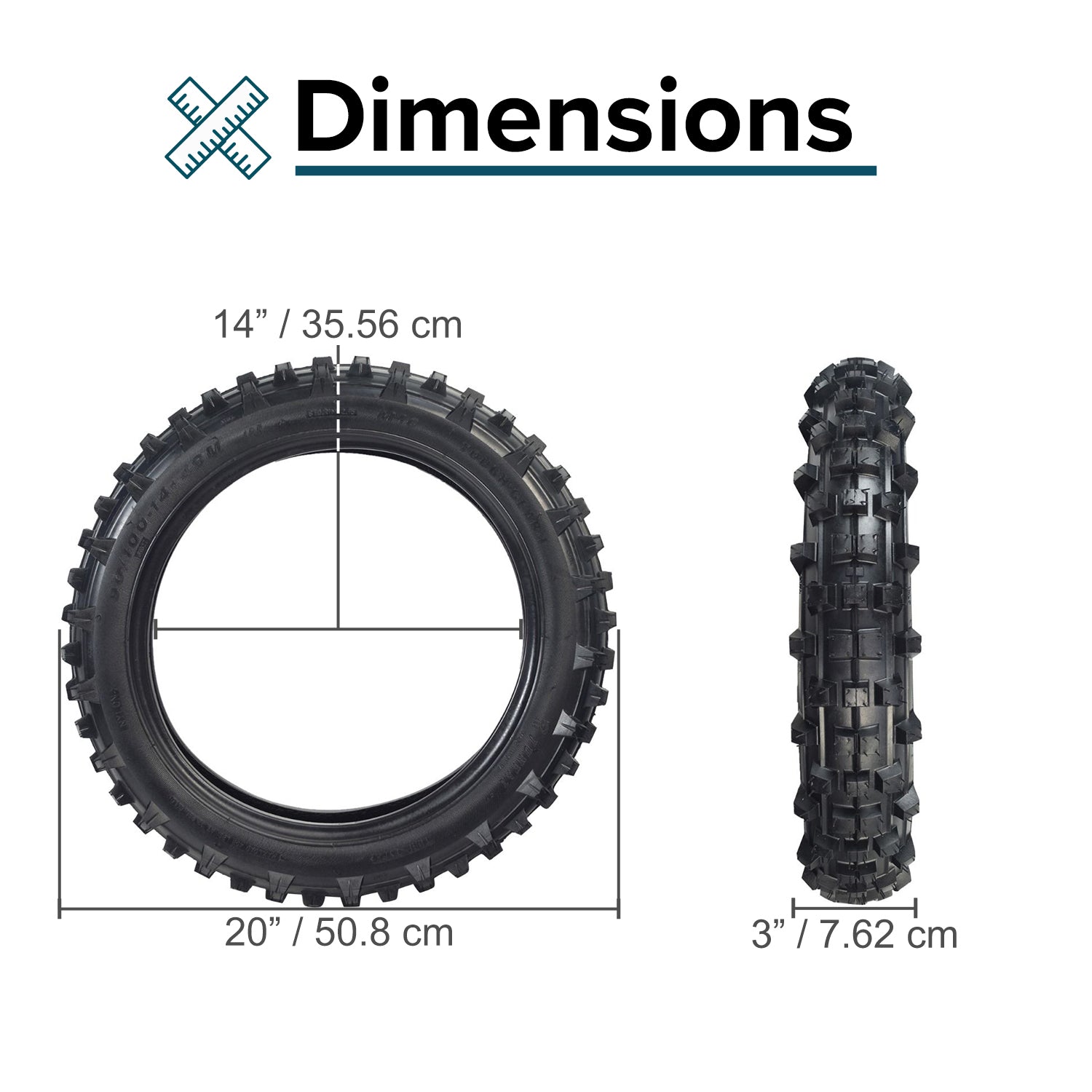 - 3.00/4.10-14 (90/100-14) with a knobby tread pattern