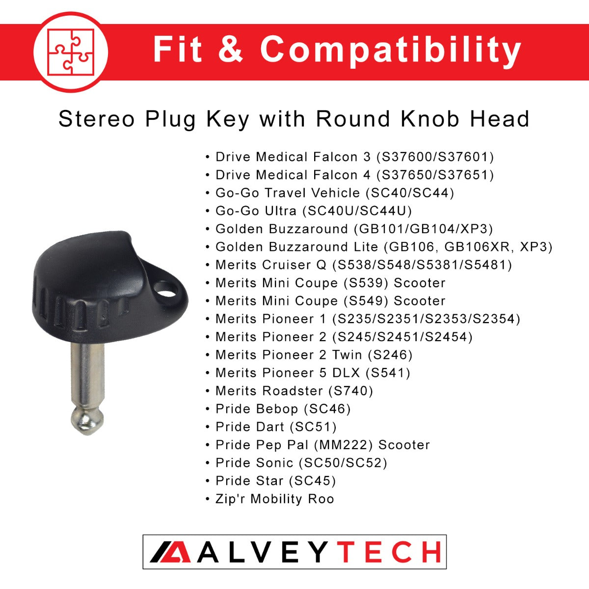 Key (Stereo Plug Style) with Round Knob Head for Pride Scooters