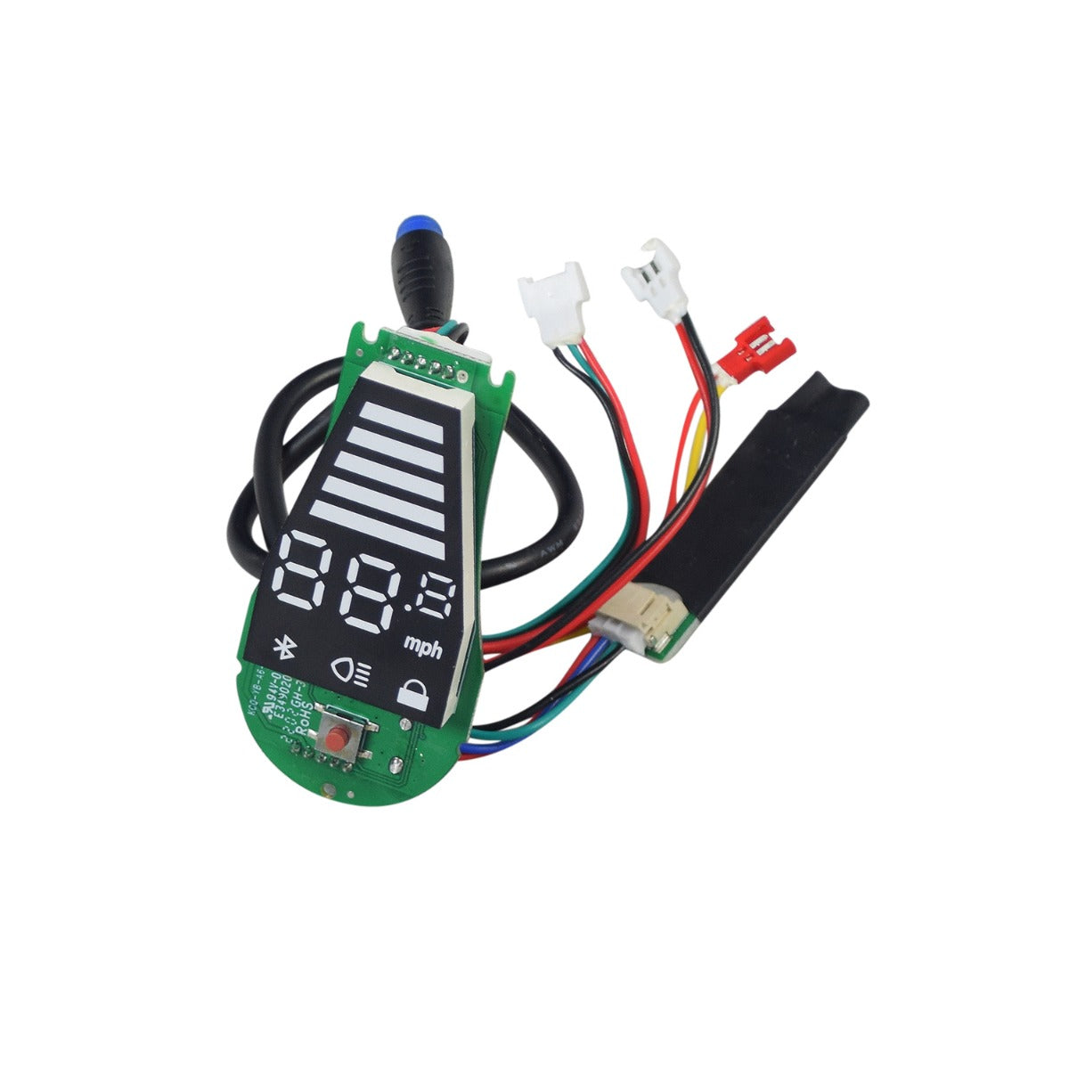 - Displays speed, battery level, Bluetooth connectivity & lights