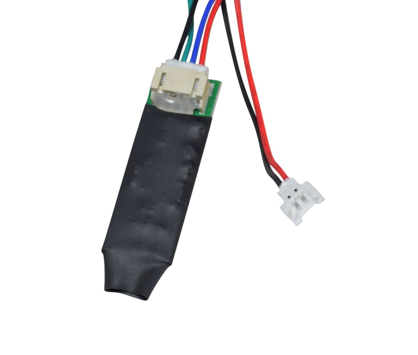 The LCD speedometer and power button with wiring harness for the Swagtron Swagger 5 Elite folding electric scooter is mounted on the handlebar's center to give the rider vital data. The display shows the scooter speed, battery level, Bluetooth connectivity, and lights. In addition, the On/Off power button is part of this electronics assembly.