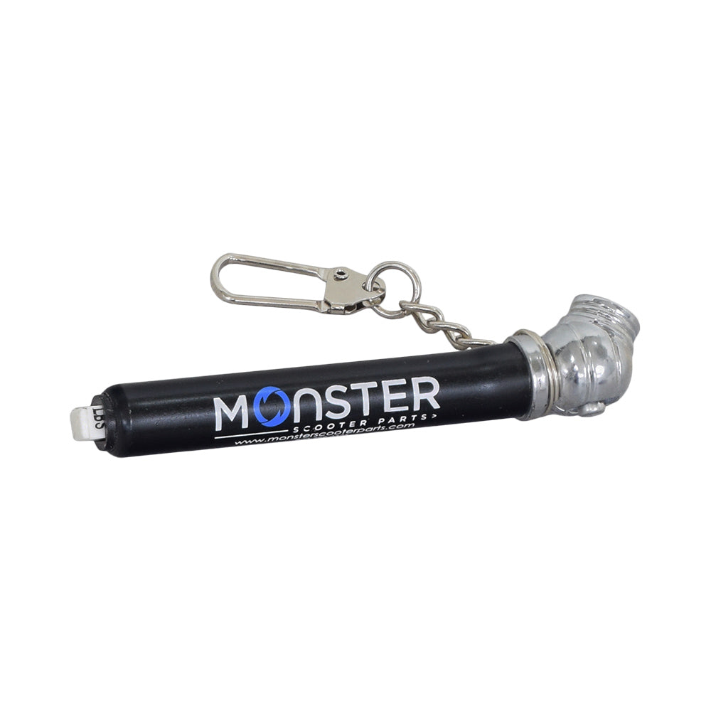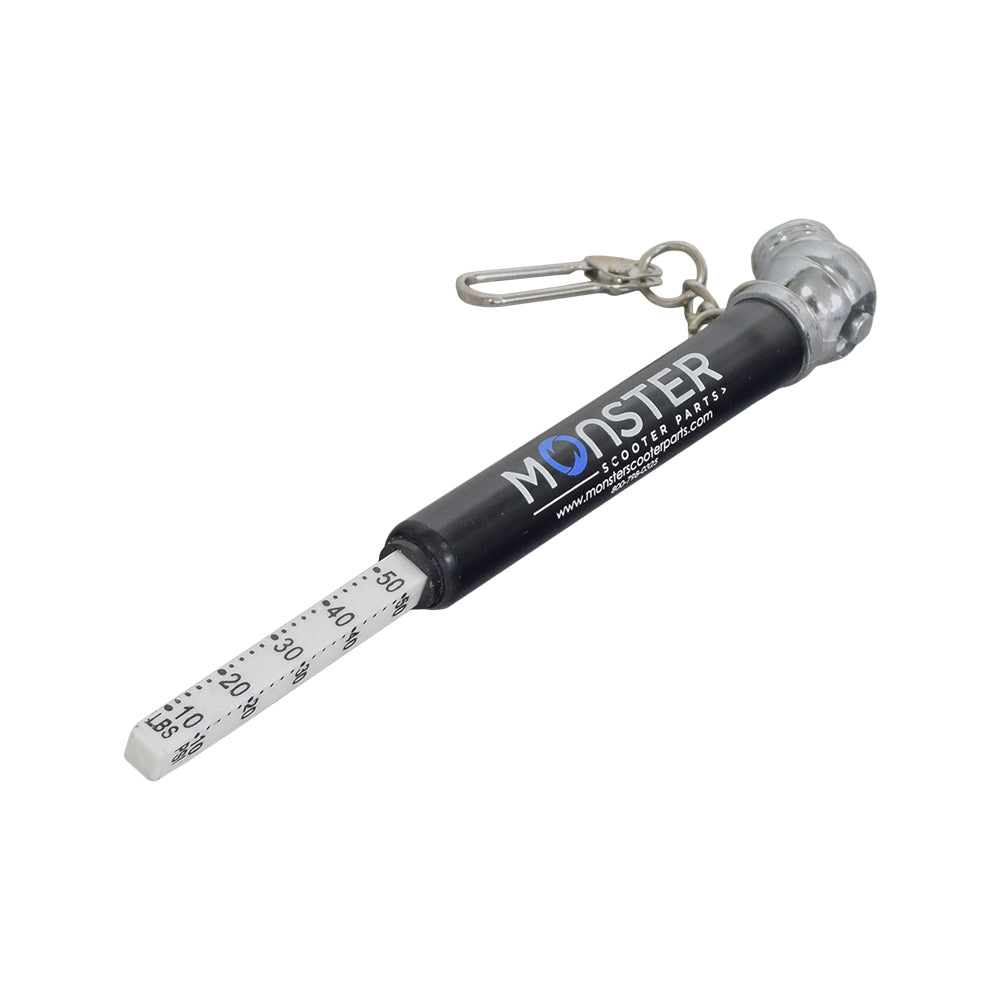 Our official Monster Scooter Parts tire pressure gauge has its place on any scooter or bike enthusiast's keychain or toolbag. This little gauge helps you maintain your tires' proper inflation up to 50 lbs PSI.