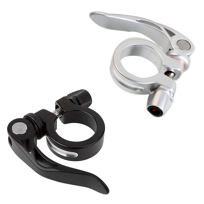 Our 28.6 mm (1-1/8") premium quick release seat clamp for bikes and scooters is a very common size for the seat tubes on a wide range of bicycles, electric scooters, and kick scooters. These heavy-duty alloy clamps weigh less than 0.15 lbs. but are strong and durable, unlike some of the more spindly and feckless examples being sold in Big Box department stores.