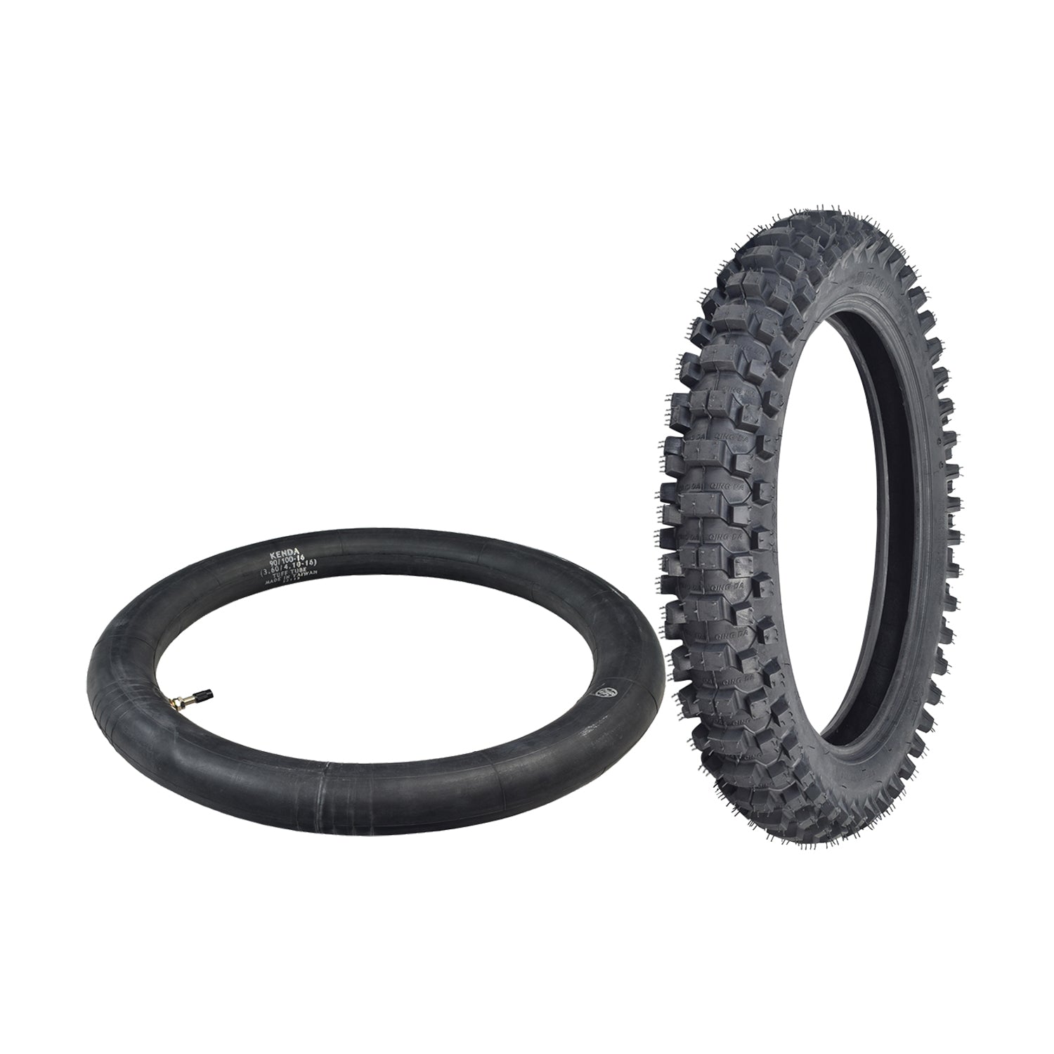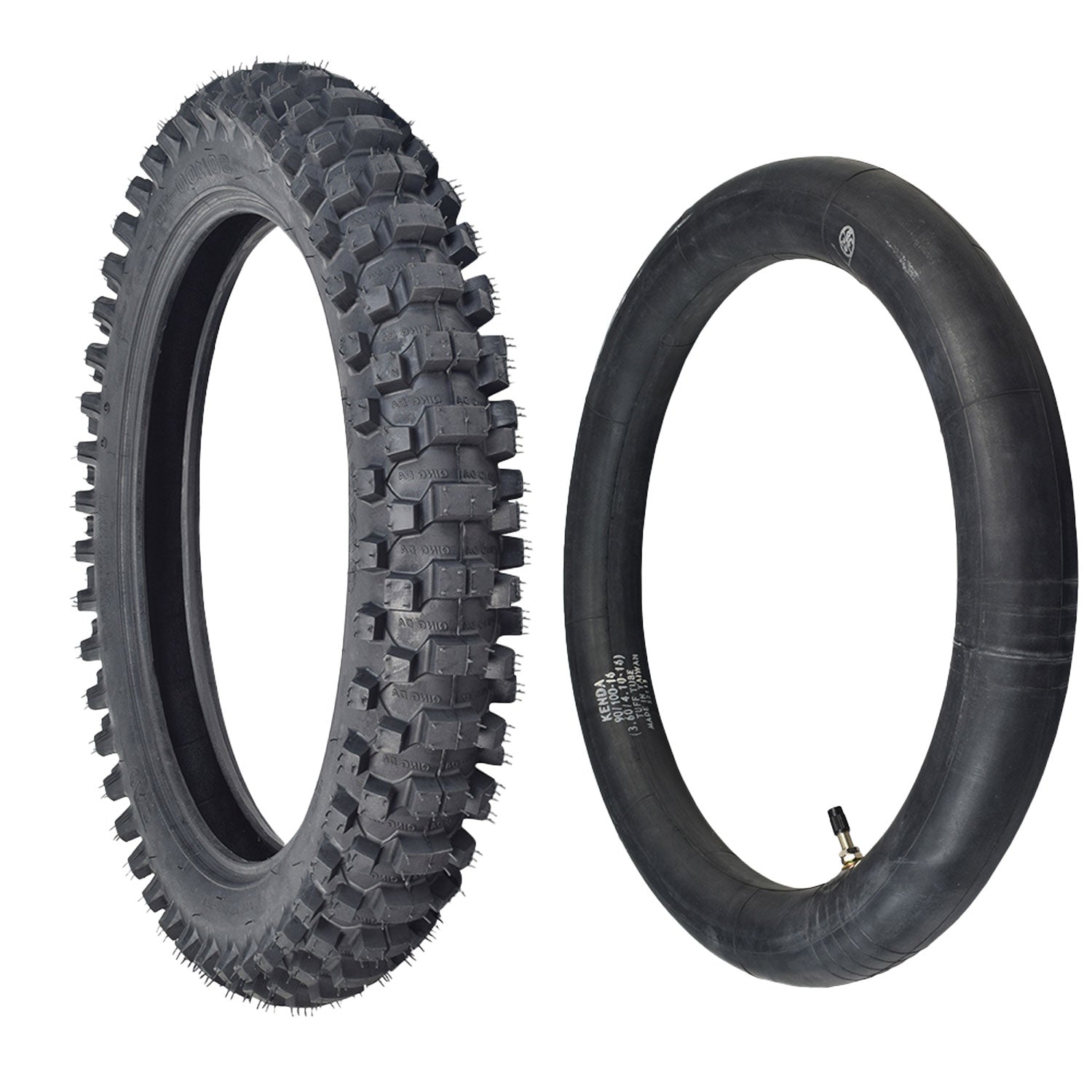 We offer this 90/100-16 dirt bike tire with the option of a matching inner tube. You can select the tire alone, or with a 90/100-16 that uses a straight valve stem.