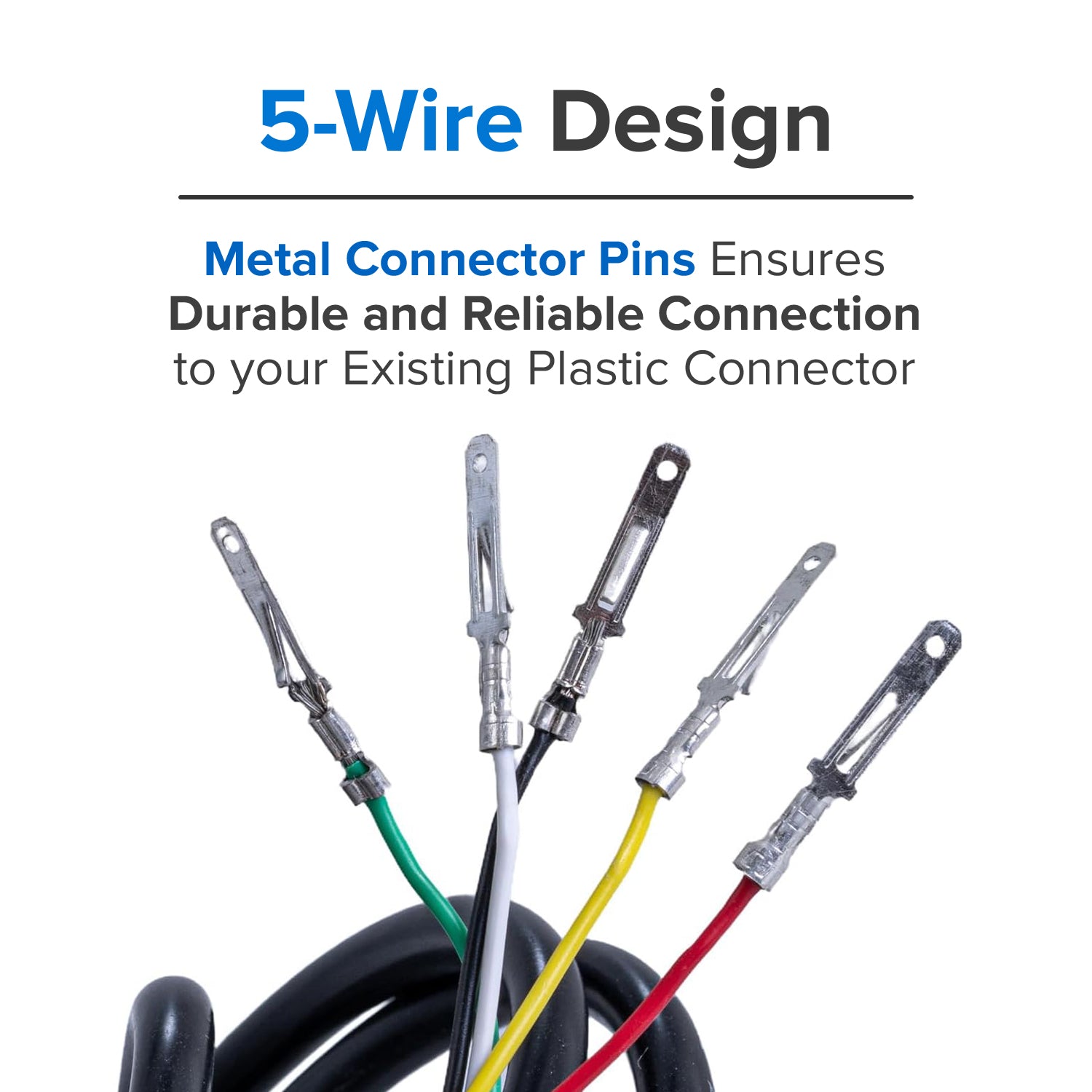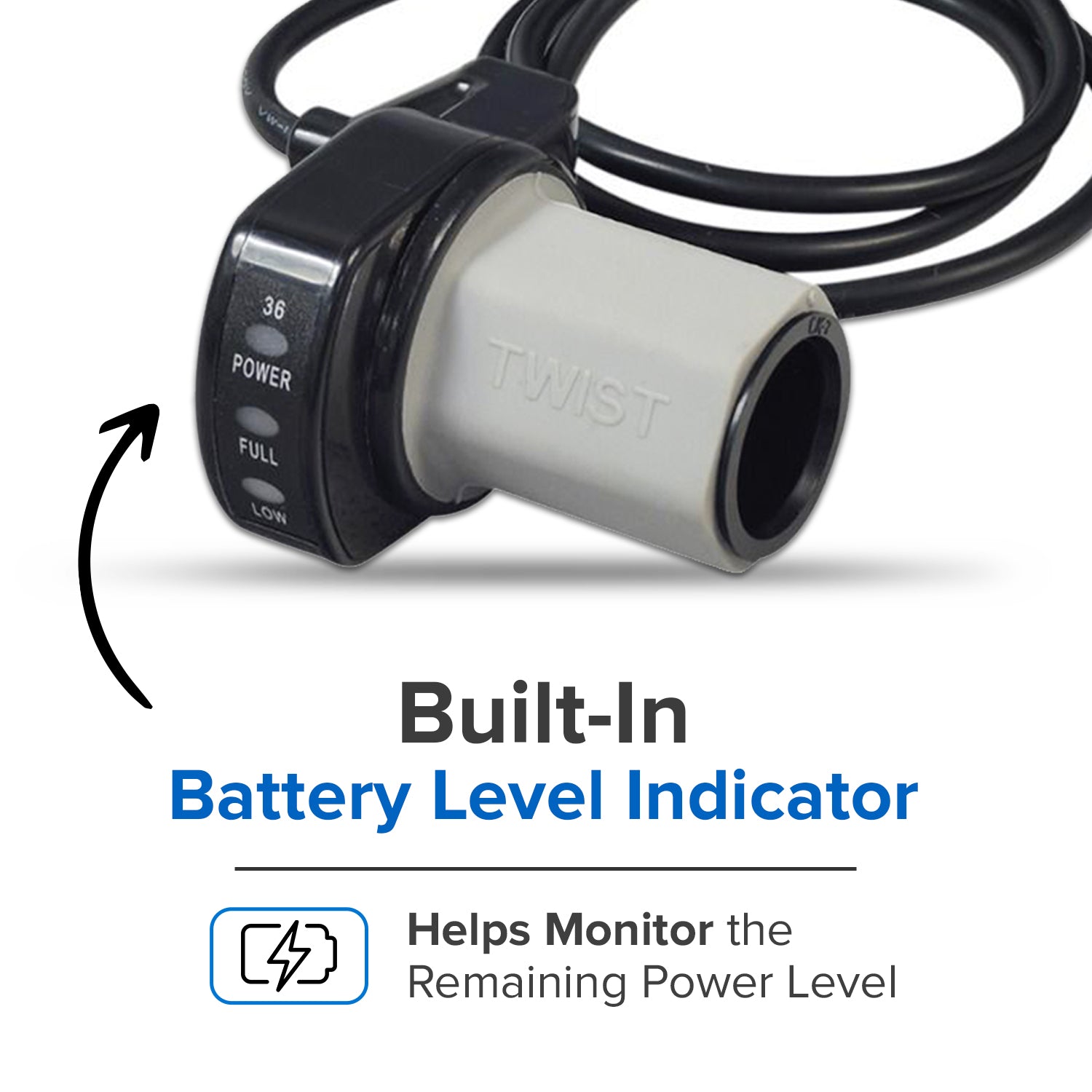 This brand new 36" throttle has 5 wires with metal end pieces that will slot into your existing plastic connector. A built-in 36 volt battery level indicator helps monitor the remaining power level of your scooter. Installation on compatible Razor scooters is a simple "plug and play" procedure.