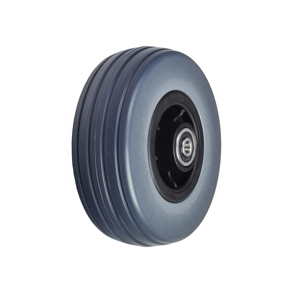 Our **Scratch & Dent** 6"x2" Black Caster Wheel for the Quantum Q6 Edge & Q6000Z is in perfect condition with no scratches or dents at all. Someone wrote a number on the side of the tire, (black ink on a very dark gray tire), but it won't even be noticed. The 6"x2" caster wheel comes complete with the bearings and spacer. Front or back, left side or right, this caster will work for all Quantum Q6, and Q6000Z power chairs.