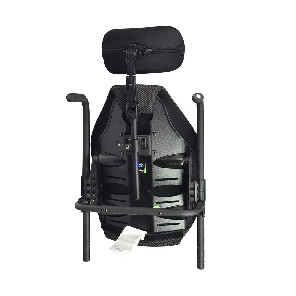This assembly was used at some point, but other than some discoloration of the attendant's grips, it looks almost brand new. Our offer includes the 15" wide x 21" high seatback, together with a 10" 5-1/2" adjustable headrest and headrest bracket, a back support frame with attendant's grips, and we are offering this at a phenomenally low price.