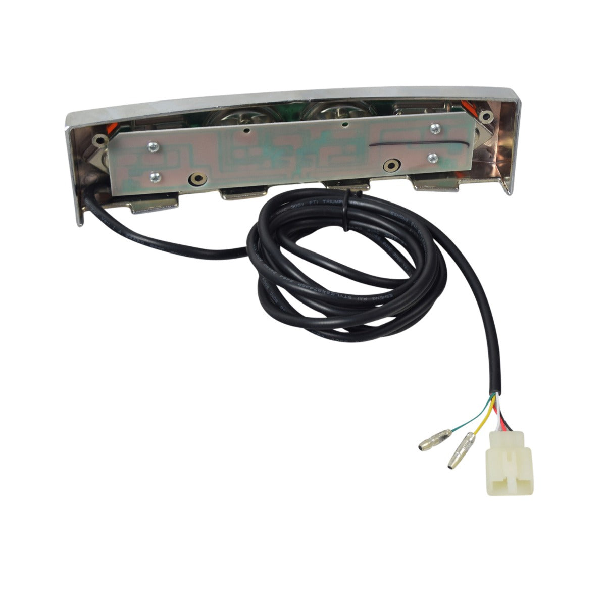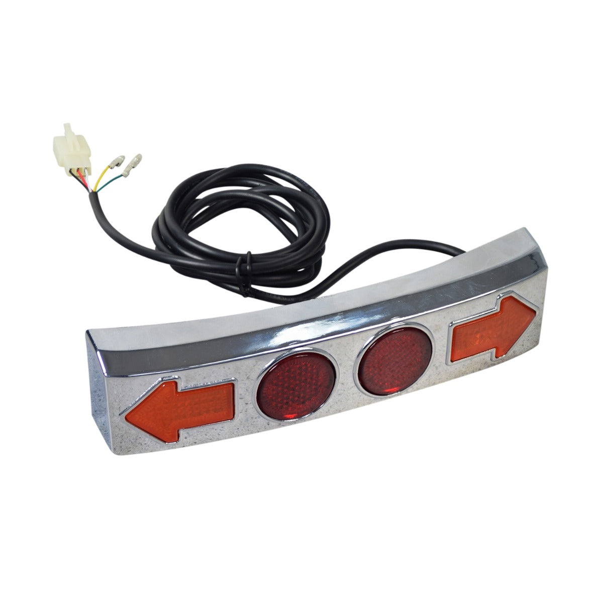 Our taillight and turn signal assembly for the MotoTec MT-FatBoy-500 electric scooter features a pair of round red brake lights as well as a set of arrow-shaped left & right turn indicators. The 72" (6 foot) wire harness with connectors is used to connect the light assembly with the handlebar controls.
