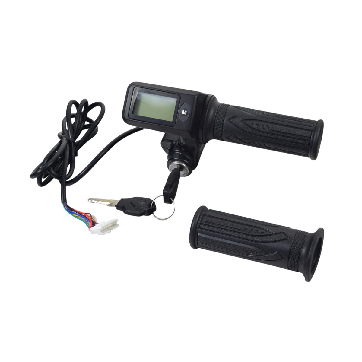 Our twist-grip throttle, grip, and key switch set for the Swagtron EB7 Elite Commuter electric bicycle is the solution when you need your faulty or broken handlebar components replaced. With everything except the braking controls, this set includes the scooter's twist-grip throttle, the key switch with two keys, the left-side handlebar grip, and an electronic display.