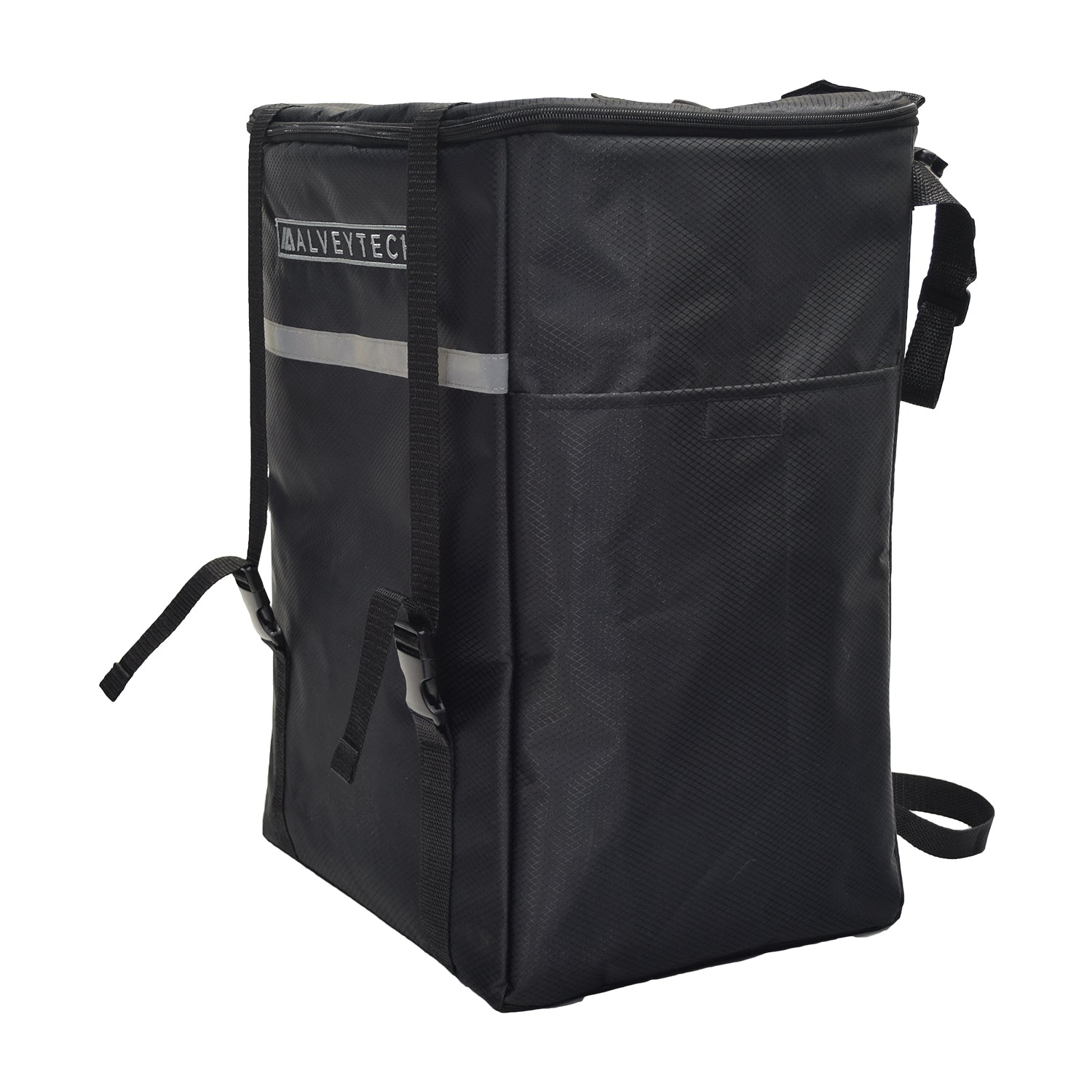 The extra large insulated seat back bag, or backpack, for wheelchairs from AlveyTech is the storage solution for people who need to bring along a fair amount of gear as they go about their day. Whether you need additional space for your picnic essentials, temperature-sensitive items, a rain poncho, or just a collection of sundry necessaries, the AlveyTech extra large insulated seat back bag is the backpack for your chair or scooter. And unlike a conventional plastic or wire basket, the AlveyTech seat back bag keeps your cargo hidden away from prying eyes and fingers.